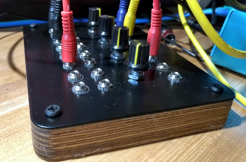 ). Обечайка из огрызка фанеры. Гнезда вчера на митино с оказией человек купил, по 20 р, потенциометры в гараже древние нашел. Самый гемор гнезда ставить - дешевые, мелкие, контакты ломкие.