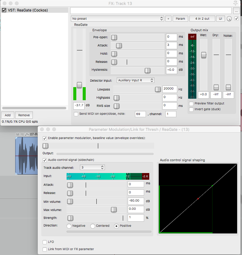 Когда уровень второго сигнала превысит первый первый, гейт подаст миди сигнал, о закрытии гейта. Как привязать параметр плагина знаю, но возникла трудность с точны повторением уровня порога, со входящим сигналом. Не подскажешь, как это сделать?
