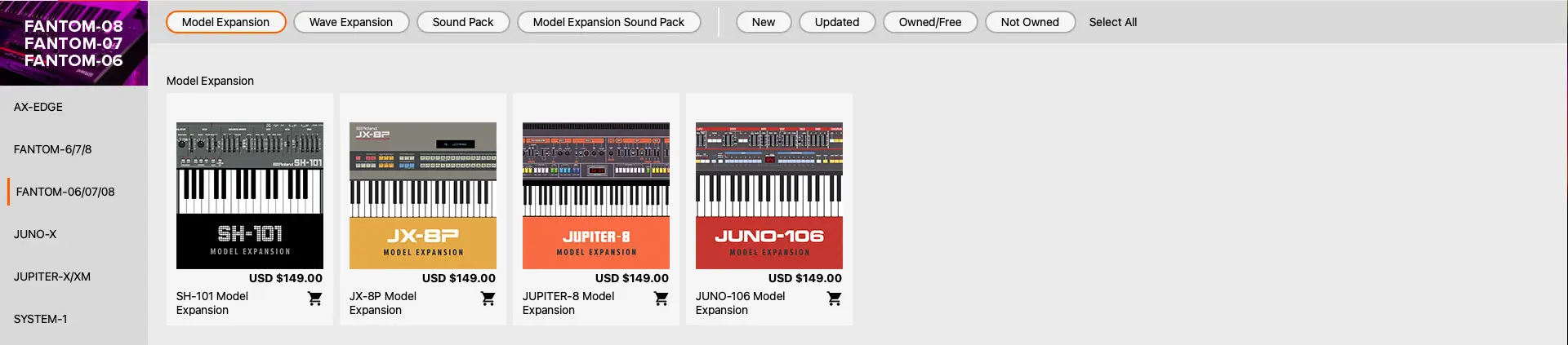 - Roland FANTOM series (FANTOM 6 / 7 / 8 and FANTOM-06 / 07 / 08 – with Expansion installed)