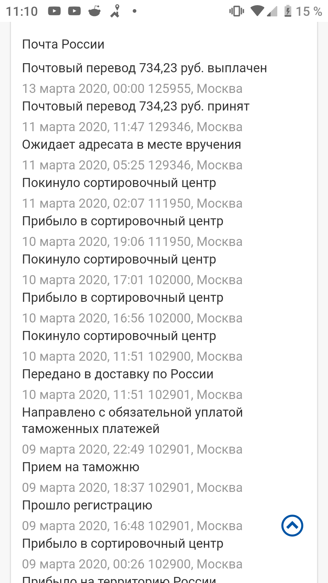 вторая посылка туда же упала и снова уже неделю там живет своей жизнью