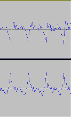 Вы слышите "противофазу" сходу (как и я), тем более осциллограмма подтвердила на все сто -