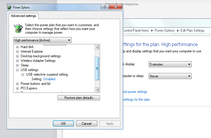 (там знаю где-то есть план питания USB и быстрый запуск) может я что то забыл?