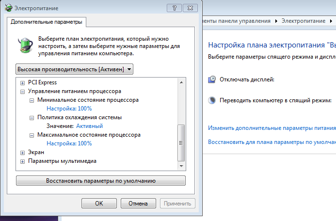 В Винде есть такая настройка (энергосбережение) она не дает работать на 100% мощности компьютеру. Найдите этот пункт и поставьте галки нужные.