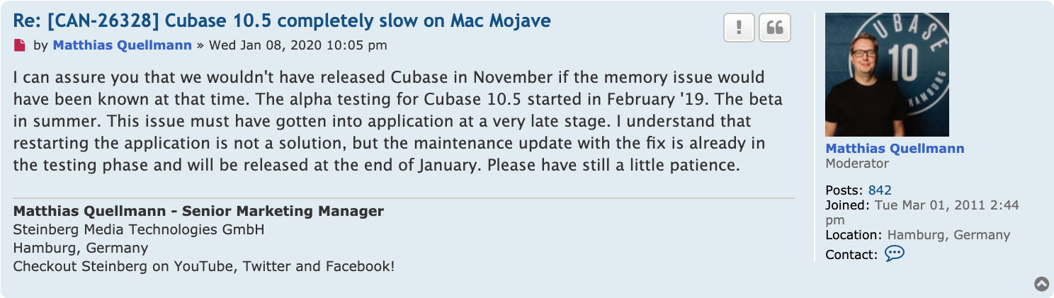 Есть Cubase 10.0.40.284 на хакинтоше на Mac os 10.14.4.