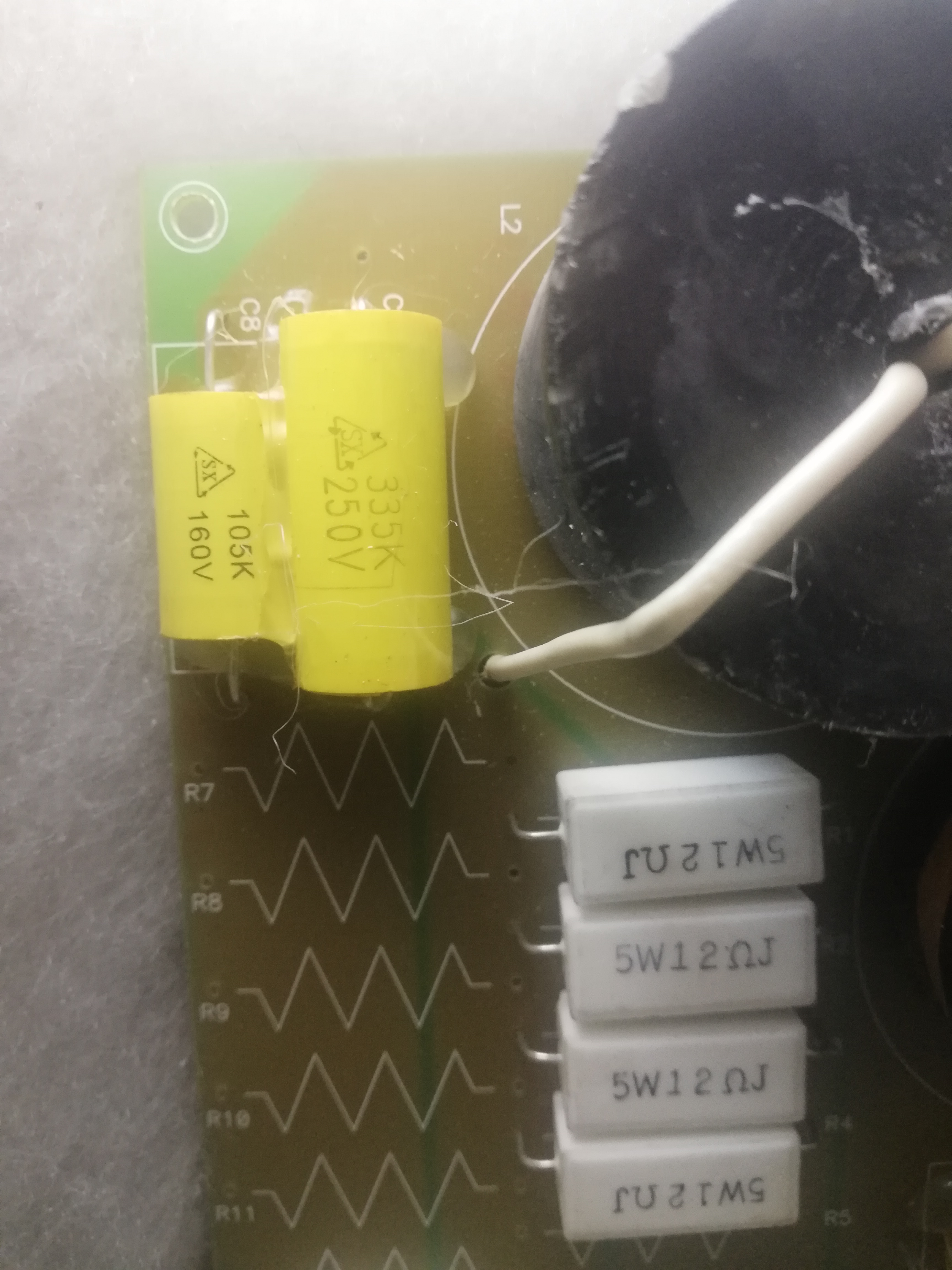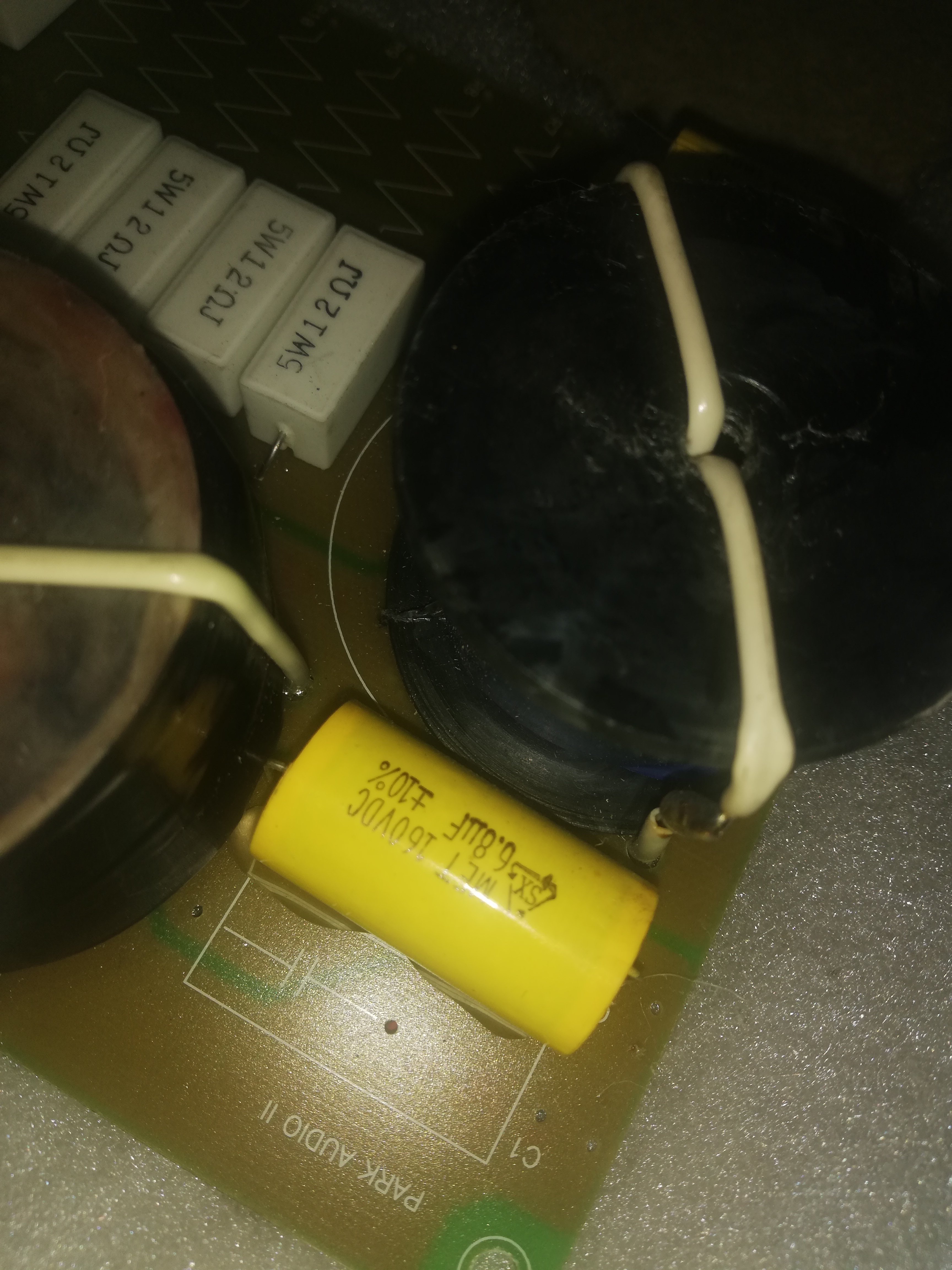 1 день попытаться самому исправить проблему!!!!! Рассказываю, акустика на фото, стала отходить от переносов аппарата катушка, поэтому прпадали 2 низких динамика (звук),я ее закрепил подпаял и зафиксировал, после сборки заметил при включении 2-х колонок, что ремонтируемая играет тише и именно как будто низкочастотные динамики оба стали играть тише, но они рабочие! Высы лаю фото фильтра, со всех сторон. Провода менял- рабочие, усилитель каналы тоже рабочие дело точно в колонке, но я слабо разбираюсь как проверить фильтр, конденсаторы и т.д., хотяб на коленке! Послезавтра корпоратив, очень горю если не поробую сам исправить сам себе не прощу, что не попробовал. Звук запускал с телефона (можно здесь на телефон погнать)но подключил микрофон и тоже самое! ПАМАГИТЕ!!!!!!!!!!!!!!!!