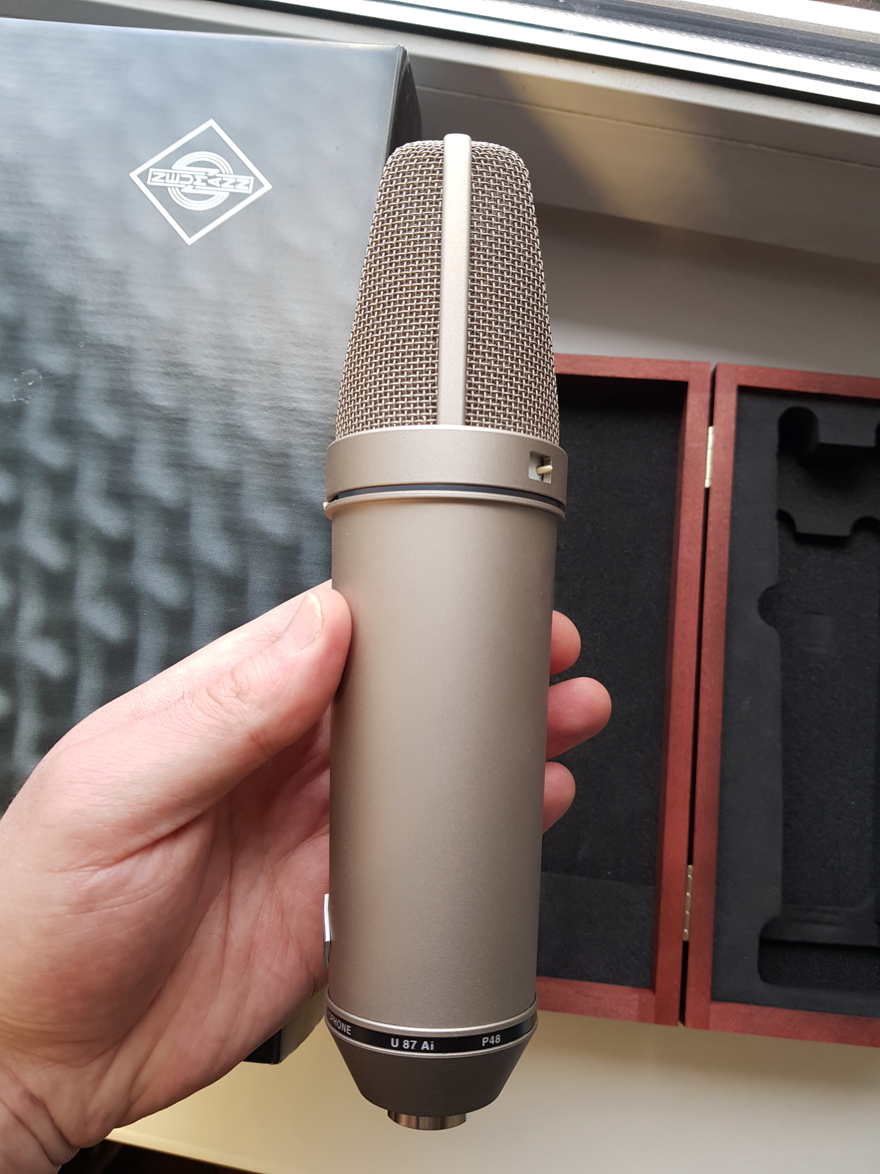 Neumann U87 Ai Studio Set (Состояние новое - даже пахнет новеньким). Куплен в конце Июля. Звучит отлично. Работает безукоризненно. Любые проверки. Полный комплект Studio Set (Микрофон, Подвес Neumann EA 87, Мануал, Деревянный Кейс, Коробка). 135 тыс. руб. - Продан.
