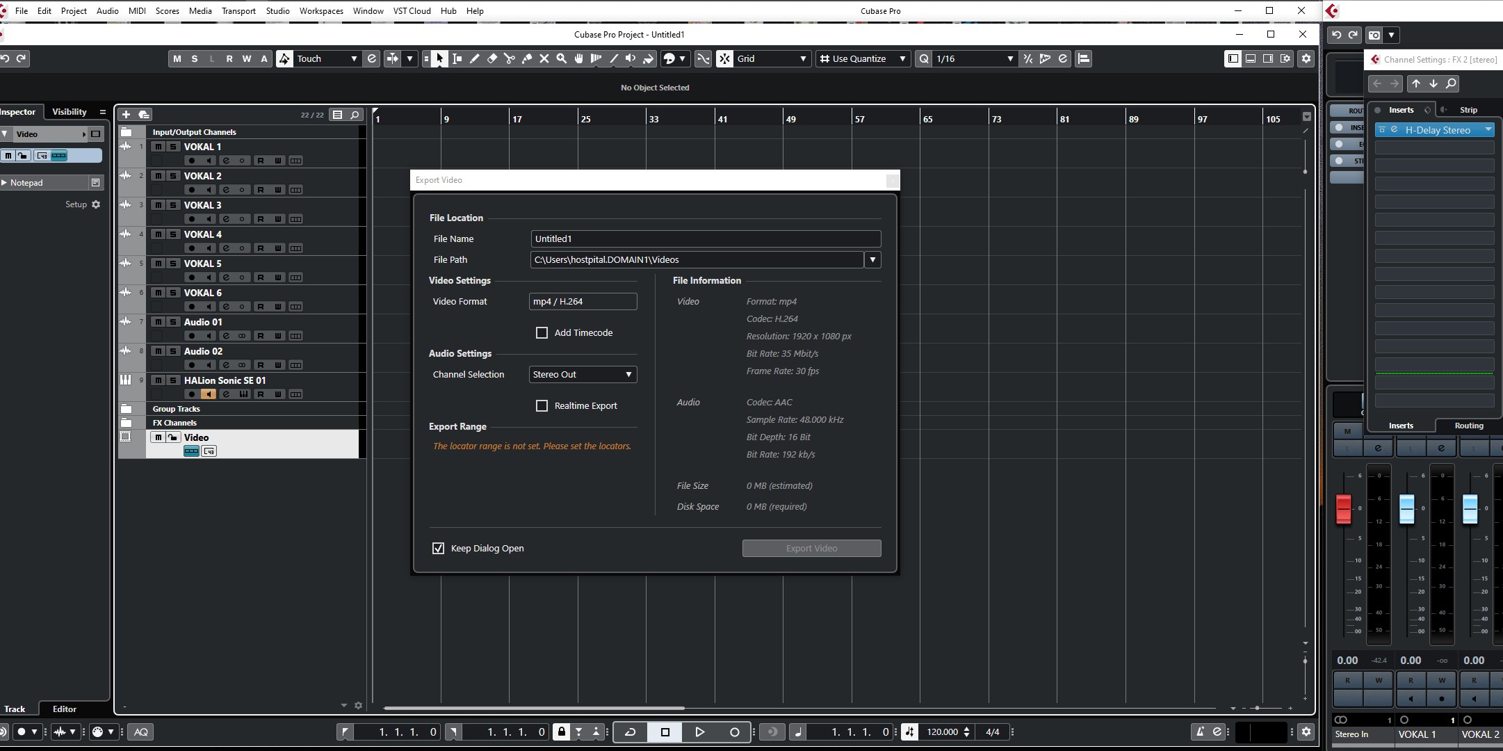 Всем привет! впервые попробовал поработать с видео, импортнул файл mp4, подогнал аудио, но экспортнуть не получается, в меню нету video!) По сути должно: Файл-Экспорт-Видео ? Может другой путь экспорта?