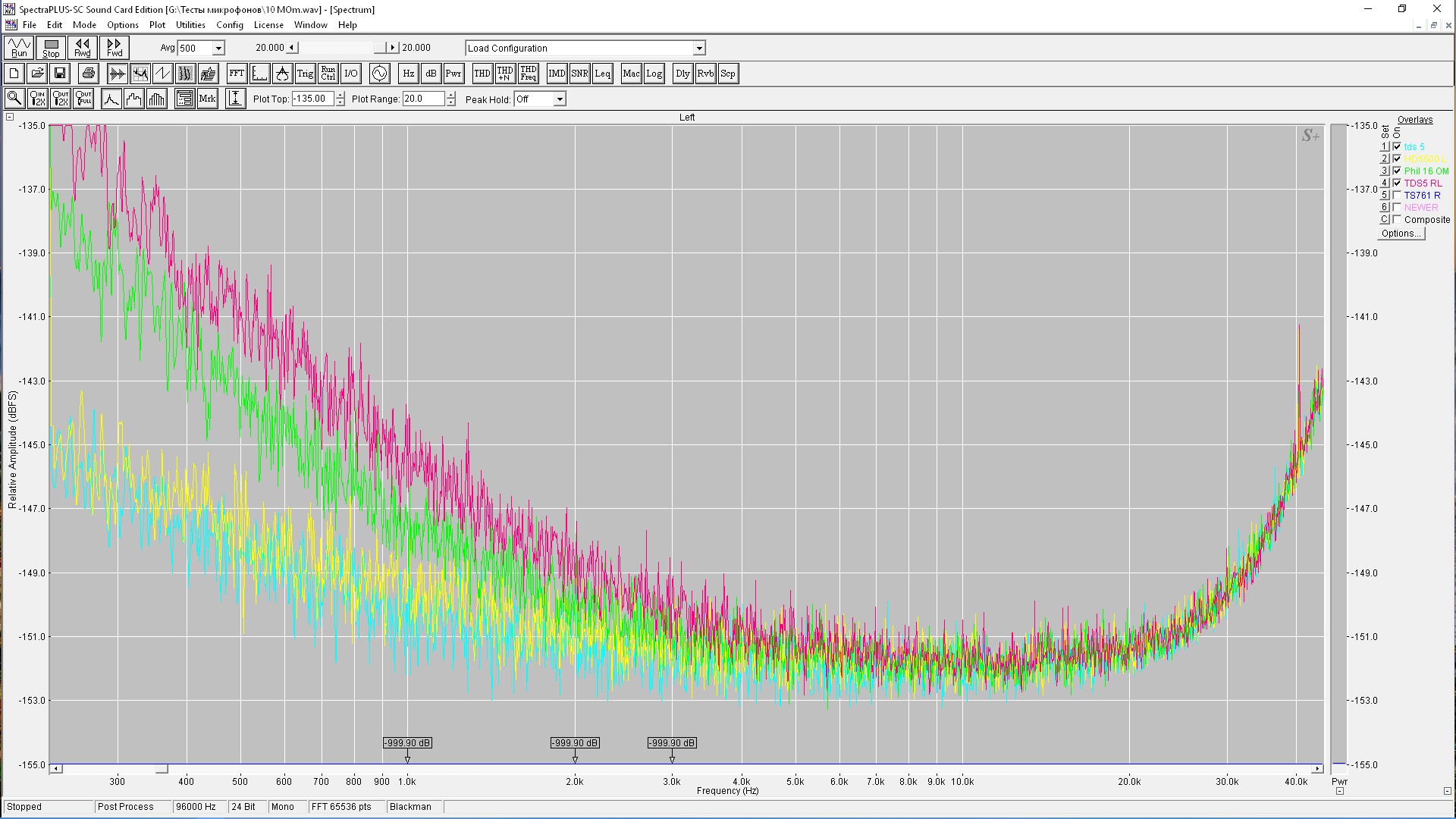 Добавил на картинку спектры записей сделанных Вами. Желтый, зеленый - 10, 3 ГОм - последние записи. Розовый 3 ГОм из поста 401.