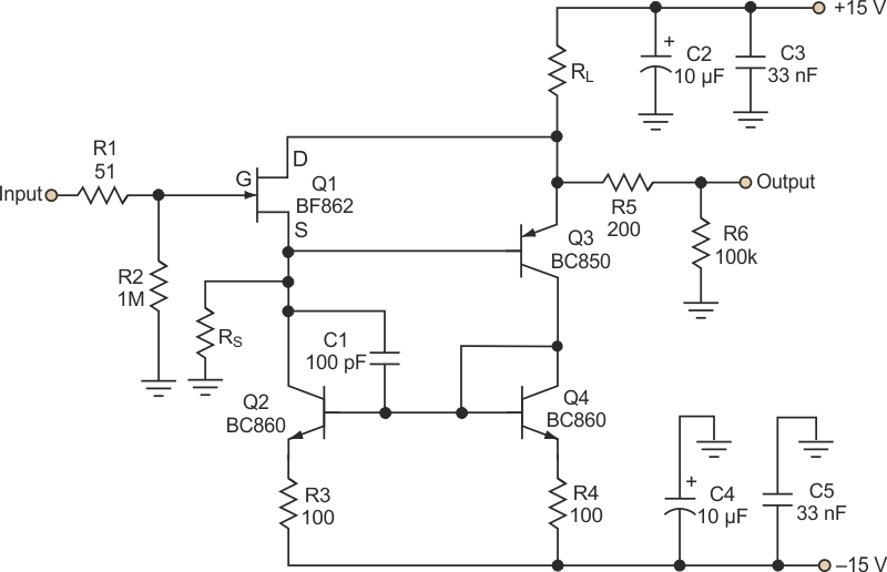 Тут подбор точки осуществляется резистором Rs, для различных нагрузок (от 1кОм до 10кОм) он лежит в диапазоне ну так от 10к до 100к. Но настойка этой точки весьма острая. Но только тут же полевик получается в режиме boot-strap (напряжение на стоке поддерживается относительно напряжения на истоке), компенсируются только минимально оставшиеся нелинейности. Насколько тут важно токовое зеркало с точки зрения компенсации помех и нельзя ли его просто заменить генераторами токов (или большими резисторами) - непонятно. Надо экспериментировать.
