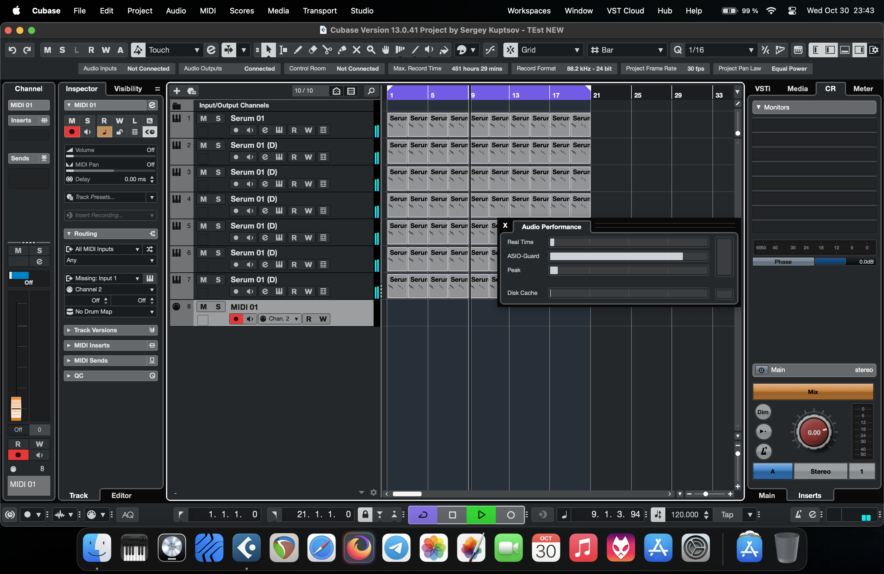Сравнивалось само собой в кьюбейсе, был создан проект в 88.2 кгц, в нём трек с серумом, в инсерт которого повесили ssl ev2 и soothe2 с максимальным разрешением и оверсемплингом. Далее треки копировались до треска при воспроизведении. m1 ultra смог озвучить 40 таких треков, а мой 5960х ни одного. Такие вот дела.. Поэтому я к новому мак мини на м4 про теперь могу обратиться не иначе как "Ваше превосходительство"