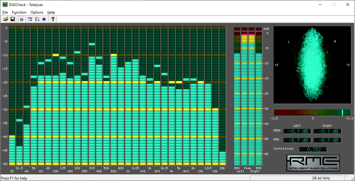 Судя по показаниям приборов, пережато. Причём не на группах, а весь микс разгонялся на мастере неприличными установками. RMS на это намекает. Звучит так, будто на mp3'шный минус записали голос. На 20 кГц штиль, а должна быть хрупкая жизнь.