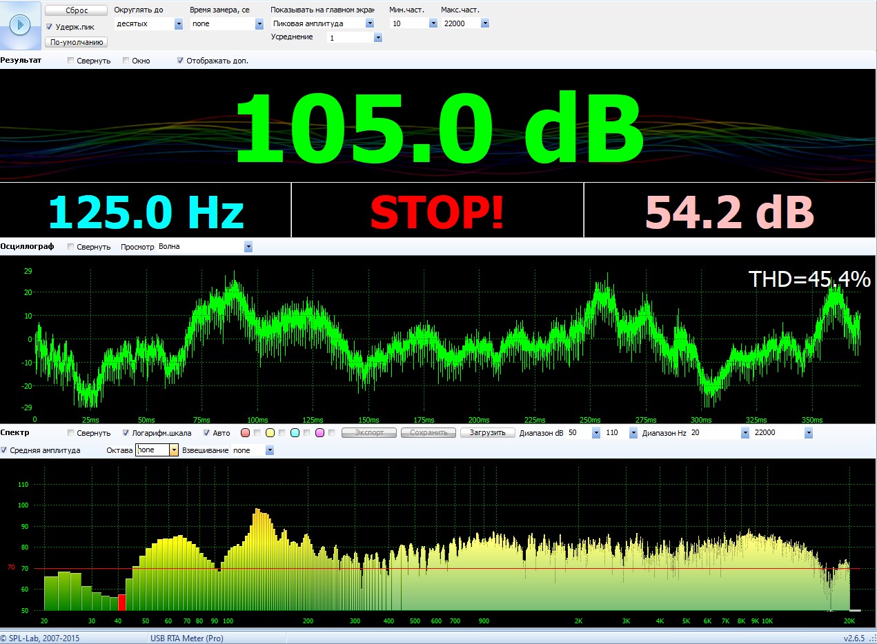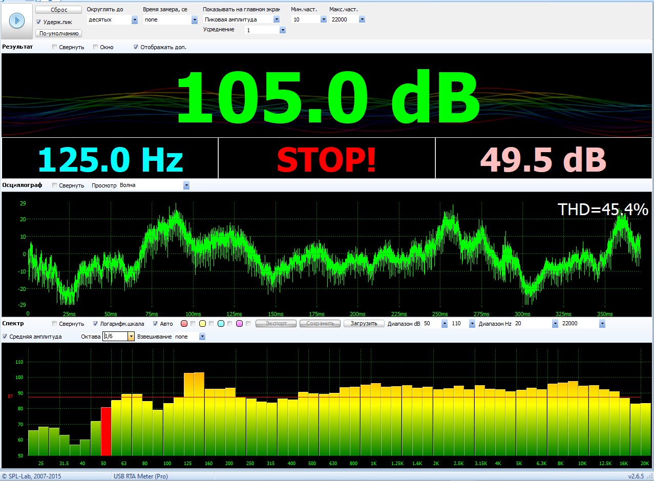 RTA Meter Pro был установлен на высоте ушей в месте прослушивания и на уровне между большими диффузорами акустики и пищалками (средняя точка). Замер проводился по принципу равнобедренного треугольника (как обычно рекомендуют производить установку производители мониторной аккустики).