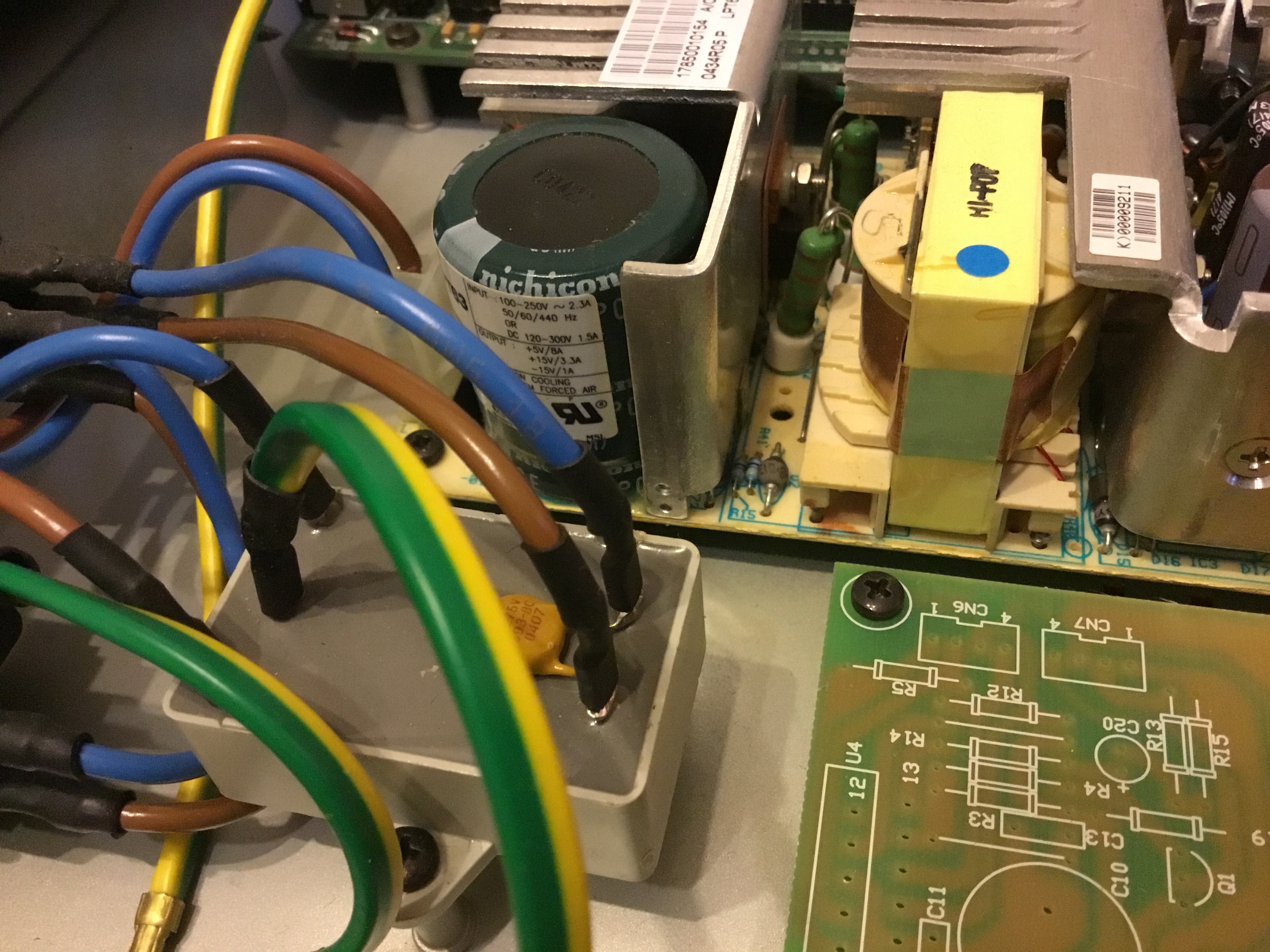 Внутри прибора я не нашел никакого джампера или свича для переключения. Есть некий зеленый цилиндр, на котором сказано INPUT: 100 - 250V. Не может ли это означать, что питание универсальное и можно включаться в 220?
