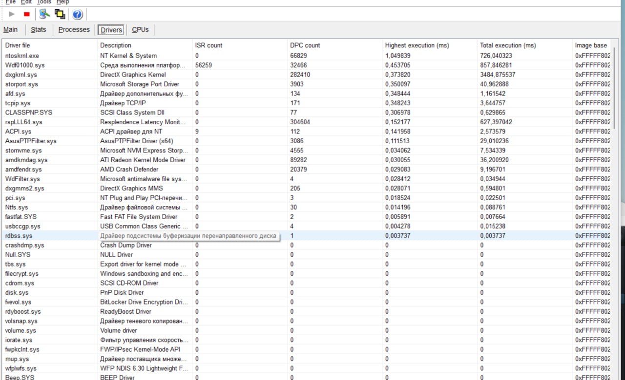 Driver with highest ISR total time: Wdf01000.sys - Среда выполнения платформы драйвера режима ядра, Microsoft Corporation