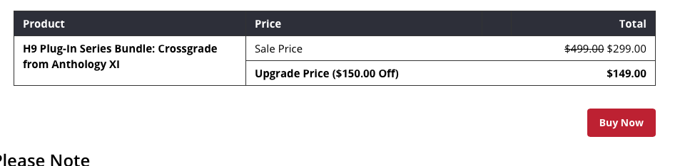 @baloo, кроссгрейд на полный H9 только. Из-за того, что там пересекаются плагины. Отдельно - только покупать по одному, благо, бывают хорошие скидки. Мне по сути из всего H9 нужно буквально 2 плага, будем ждать дальнейших скидок))