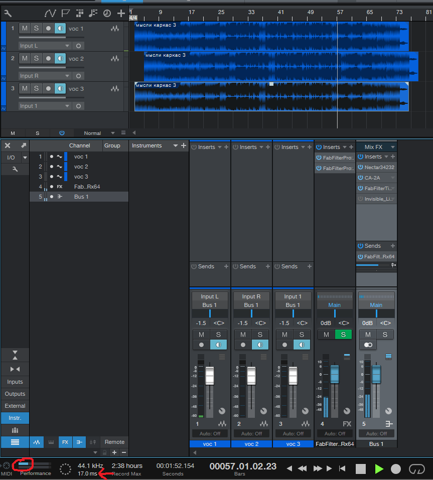 И как организовать правильно обработку общака по вокалу? Чтоб и задержки хватало и не трещало от нехватки процессора