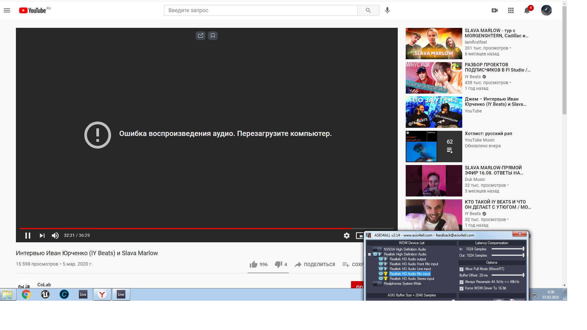 Продолжу пиарить ASIO Link pro. Выведет любой звук на любое устройство в любой среде. В том числе позволит с asio4all или подобным драйвером запустить одновременно и DAW и "ютабчик".
