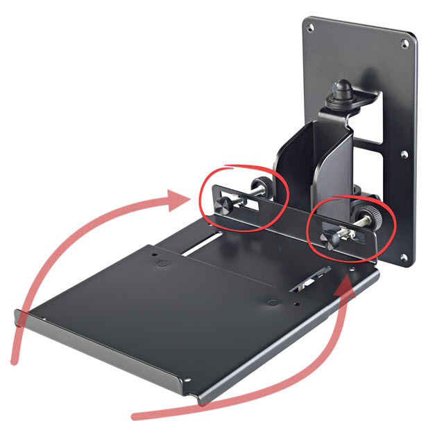 не хочется врезаться шурупами в новые мониторы потому, возможно рассмотреть подобные зажимы на площадках (вот только таких площадок у K&M отдельно нет, а у кого есть?):