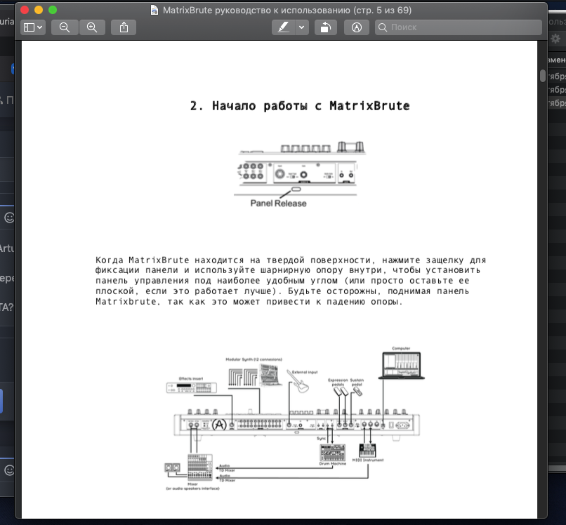 Точная копия оригинального мануала для синтезатора Arturia MatrixBrute на русском языке. Сделано в формате PDF и Word.