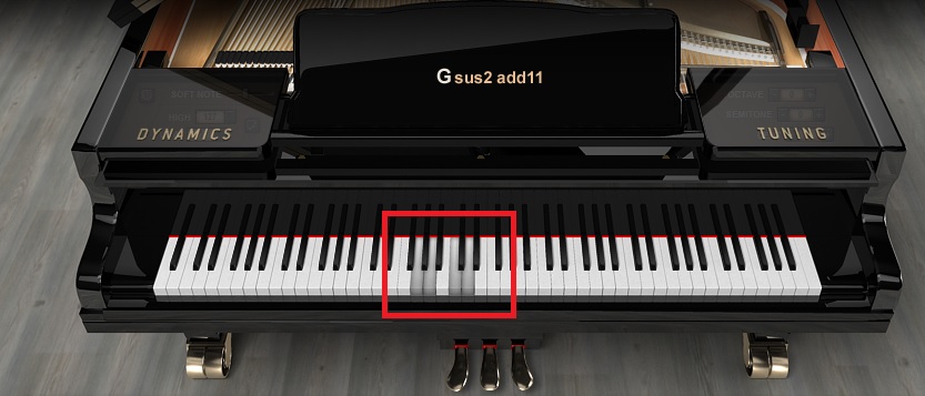 А мне кажется, что от Соль все пляшут.) Первый аккорд sus (в басу взяли F) разрешается во второй, простой и незатейливый.)