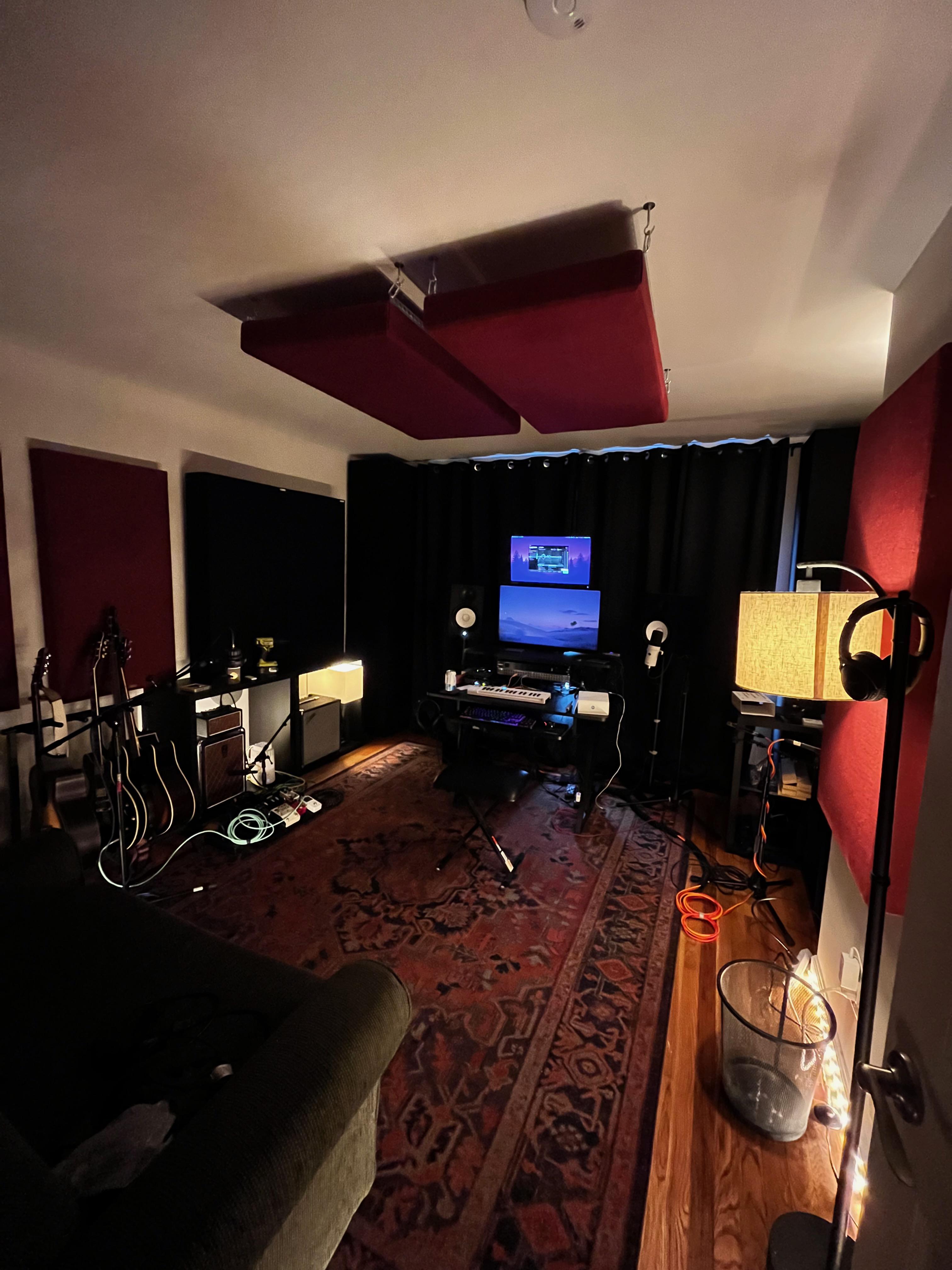 У меня кстати 2 glass fiber панели за мониторами стоят. Я хотел их использовать для всей комнаты, но они сцуко дороже, и я привычно взял пенные панели.