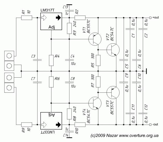ну и выводы adj( 1 на вашей схеме) через 220мкф на землю