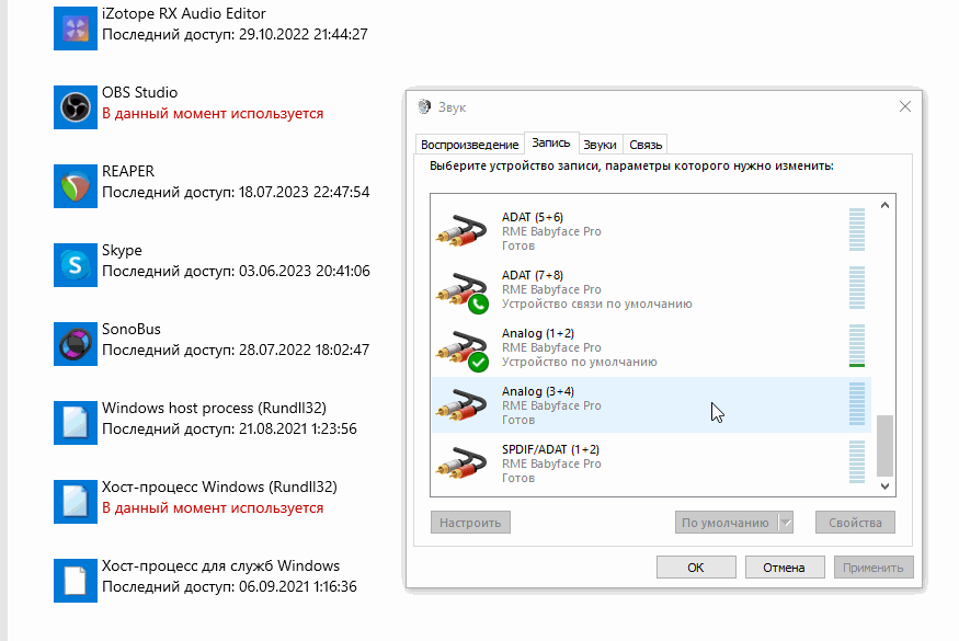 тогда скорее всего в дровах RME где-то не стоит галочка "прокидывать в Windows MME mixer" - чот такое.