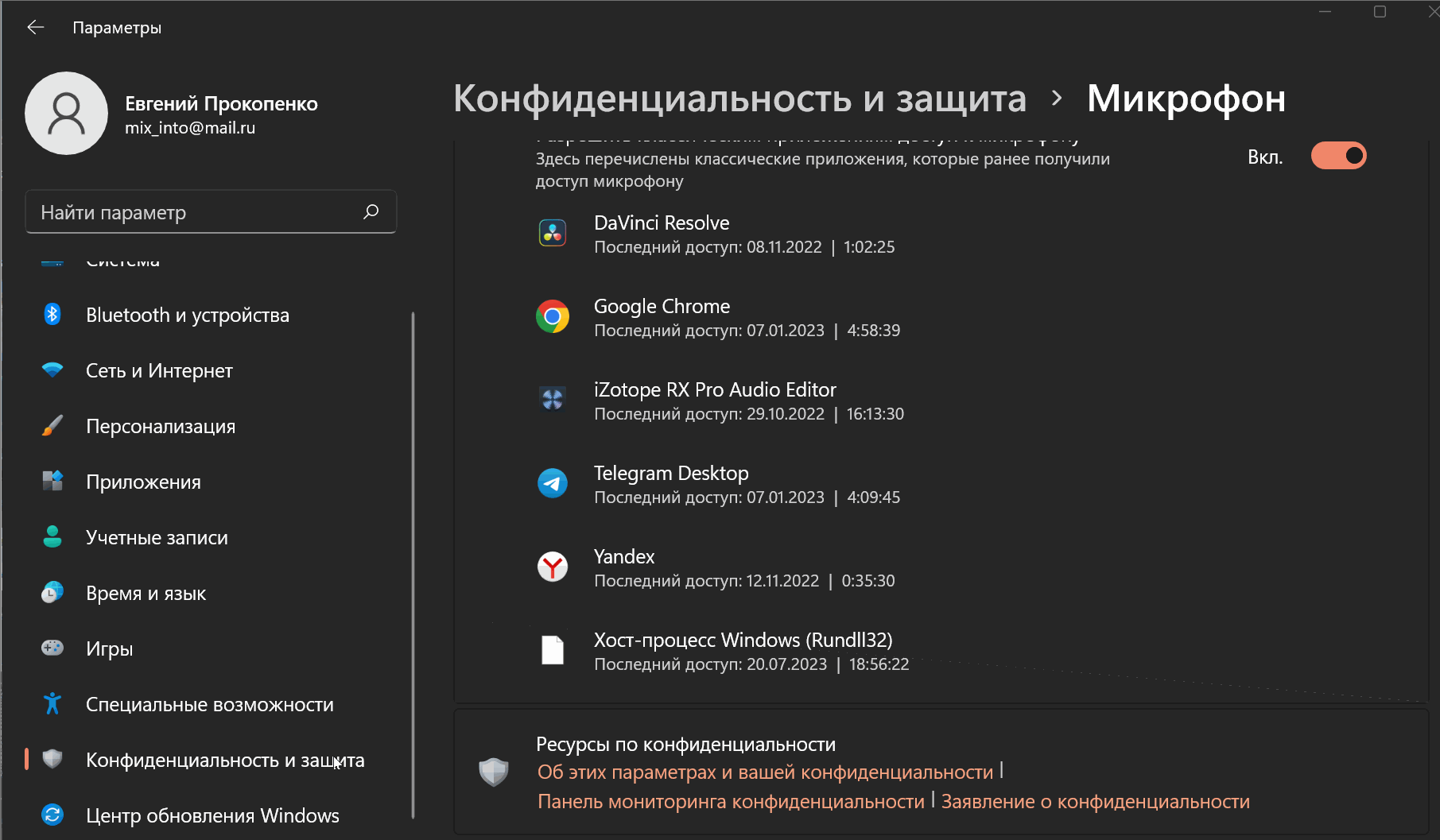 доступ к микрофону включён?