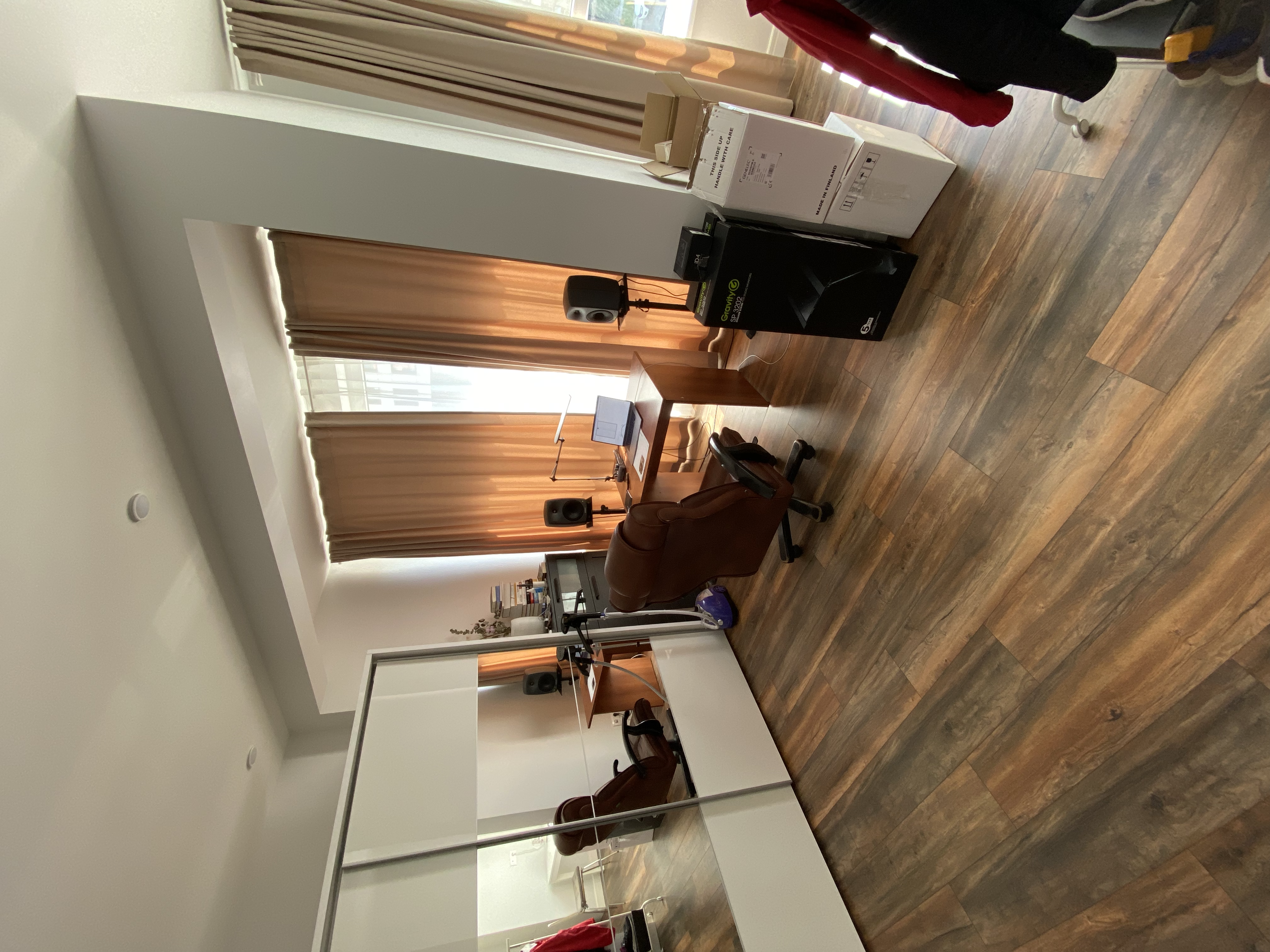 Есть очень большое пространство, которое дает нехилое такое рассеивание (см фото). Может есть какие-то напольные панели, которыми можно отгородиться, поставив их за спиной рабочего места?