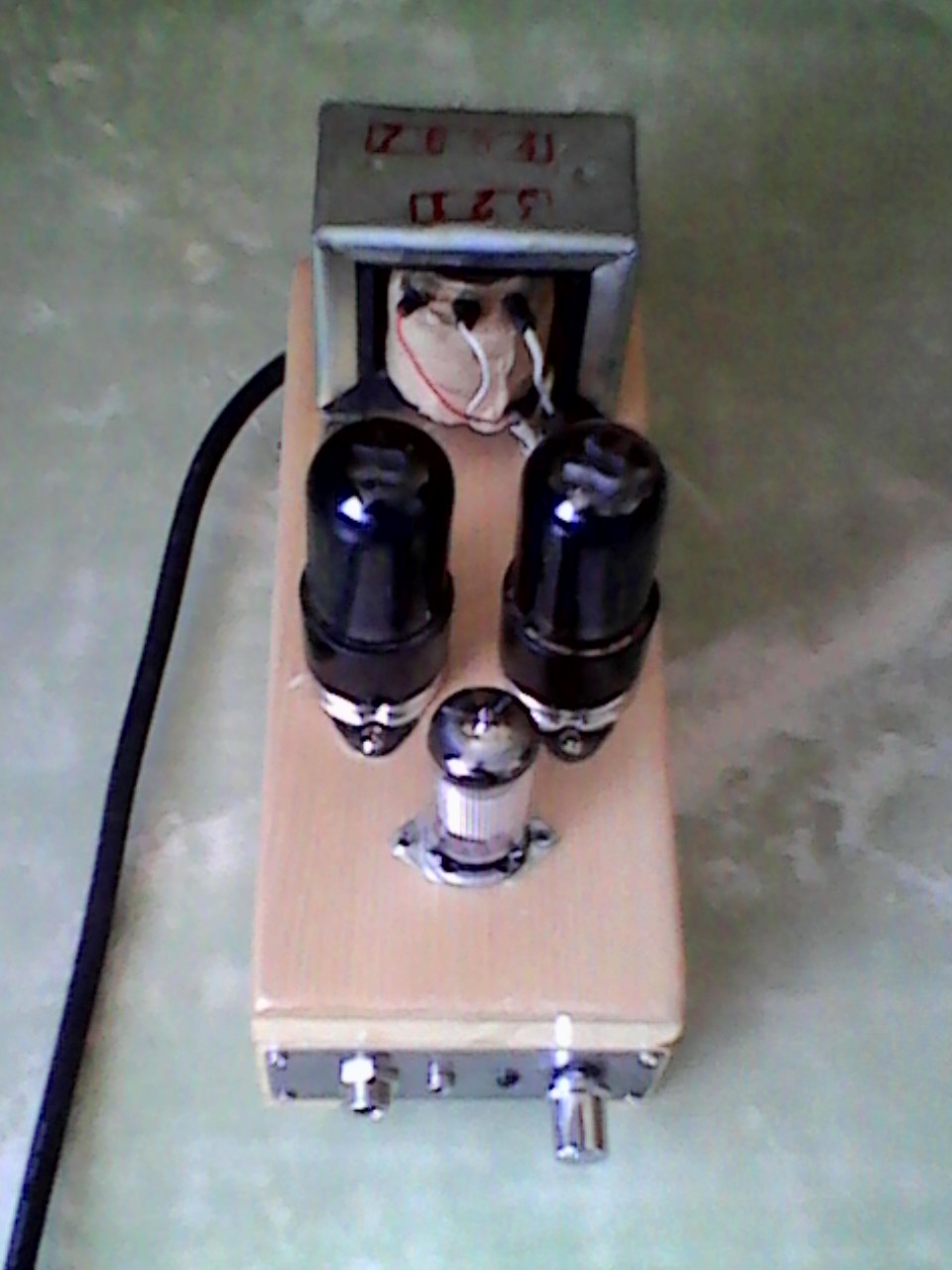 Мощность 4- 5 ватт примерно. Выход для записи-наушников. Работает без шумов ,звук мягкий,как у 6п6с .Любой динамик можно подключить на выход.Лампы можно менять на 6п3с или 6L6 c увеличением мощности.