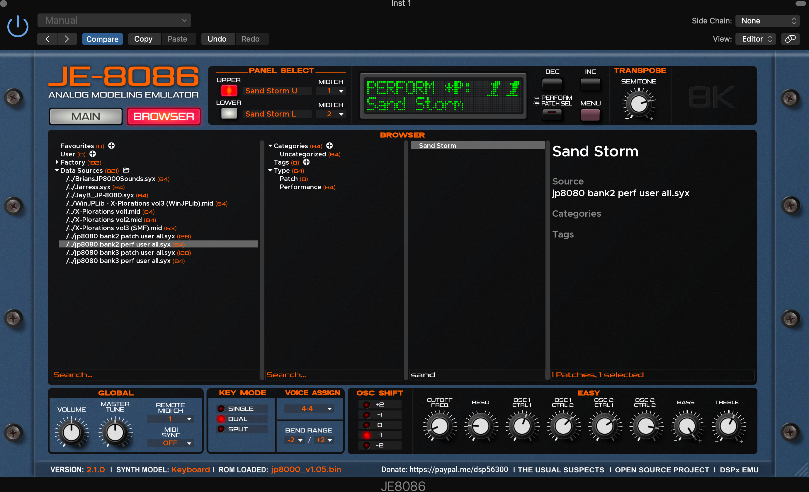 - Первым пресетом, который появляется при включении JP-8080, является Sandstorm — яркий и шипящий звук пэда, который Виртанен использовал для аккордов, лежащих под основной мелодией песни, и который позже вдохновил на название композиции.