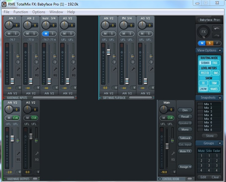 @Вячеслав64, Если нет Fireface USB settings и TotalMix, а драйверы установлены, значит скорее всего устройство находится в режиме CC (Class Compliant) -это для IOS. Нужно сделать следующее: перед подключением USB провода к устройству зажать кнопки SELECT и DIM, после подключить USB (питание внешнее не нужно), если на дисплее карты загорятся буковки "PC", то это режим ПК совместимый с Виндоус, если же "СС", то проделать эту процедуру ещё раз.