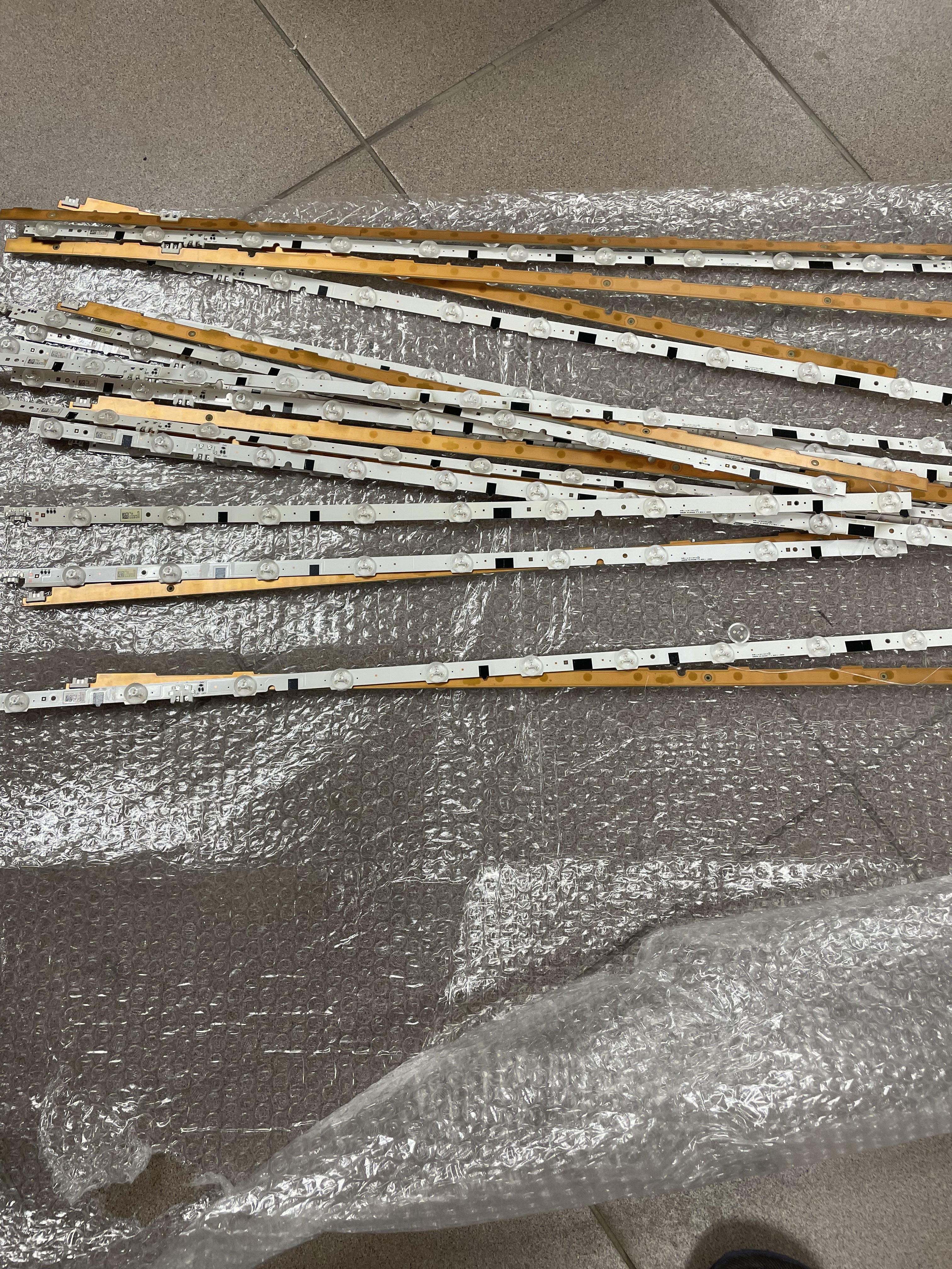Вобще,я это должен писать в теме «выпил пешы тут» но она закрыта. В общем вчера с товарищем решили мы выпить водки и одновременно отремонтировать мой телевизор 65 дюймов ,а именно поменять в нем диодную подсветку. Для чего я в гараже поставил стол и отгородил угол куда ставить стекло и всё такое ибо все делается в 4 е руки(ютьюб нам в помощь). Ну в общем литровая бутылка водки и 3 часа времени у нас это заняло. Начали пить после снятия стекла(когда стало понятно что не так всё страшно).. в общем за такую работу в мастерских беруться примерно за 30 т.р . Мы решили развлечься ,ибо все клюбы и стриптизы надоели порядком.Вобщем..сами ..и вы знаете …очень всё получилось,о чём с гордостью могу заявить. Гемор конечно ,но эта развлекуха того стоит(если с водкой). Всего поменяли 22 плашки(это полный комплект)L&R они разной длинны левые и правые. Теперь телек как новый,сгорело не всё за 9 лет,но порядочно. В принципе самсунги делают качественно. Токи тоже подстроили. Правда уже после половины выпитой. Ну мы по визуалу уже:)) на фотке уже снятые плашки. А..да ,в кетае не стал покупать набор плашек,взял в Питере detalkofled.ru в 2 раза дешевле пока. В кетае 15.с копейками,у Питерцев 8 тр.
