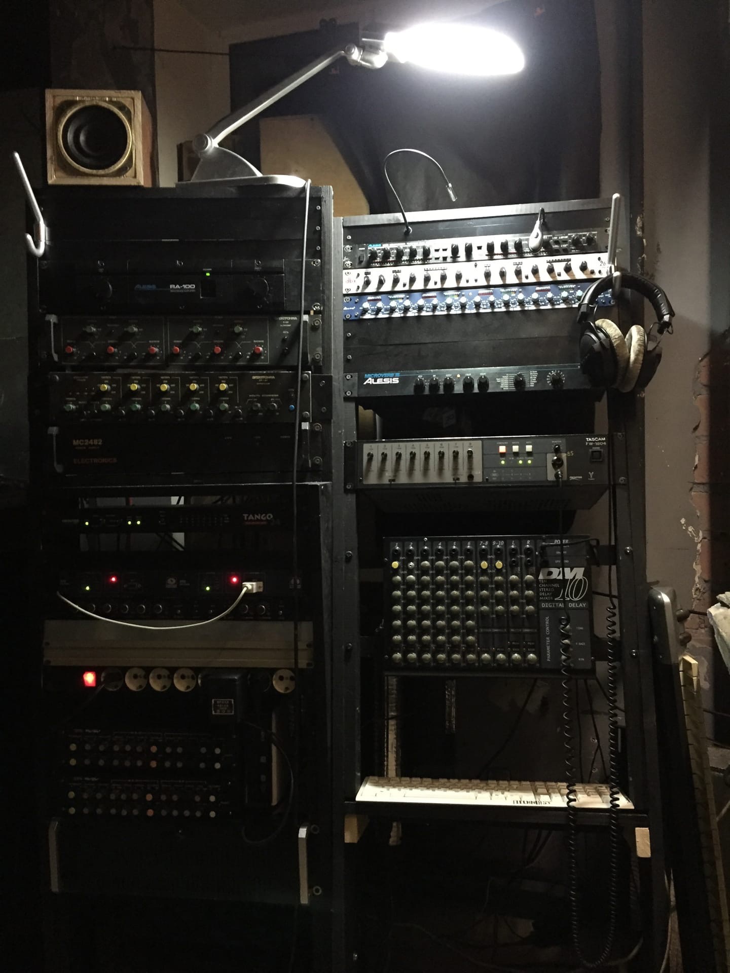 У меня собранна деревянная стойка и оборудование прикручено саморезами, под некоторые саморезы я подложил шайбы чтобы не поцарапать шляпкой самореза рековые уши
