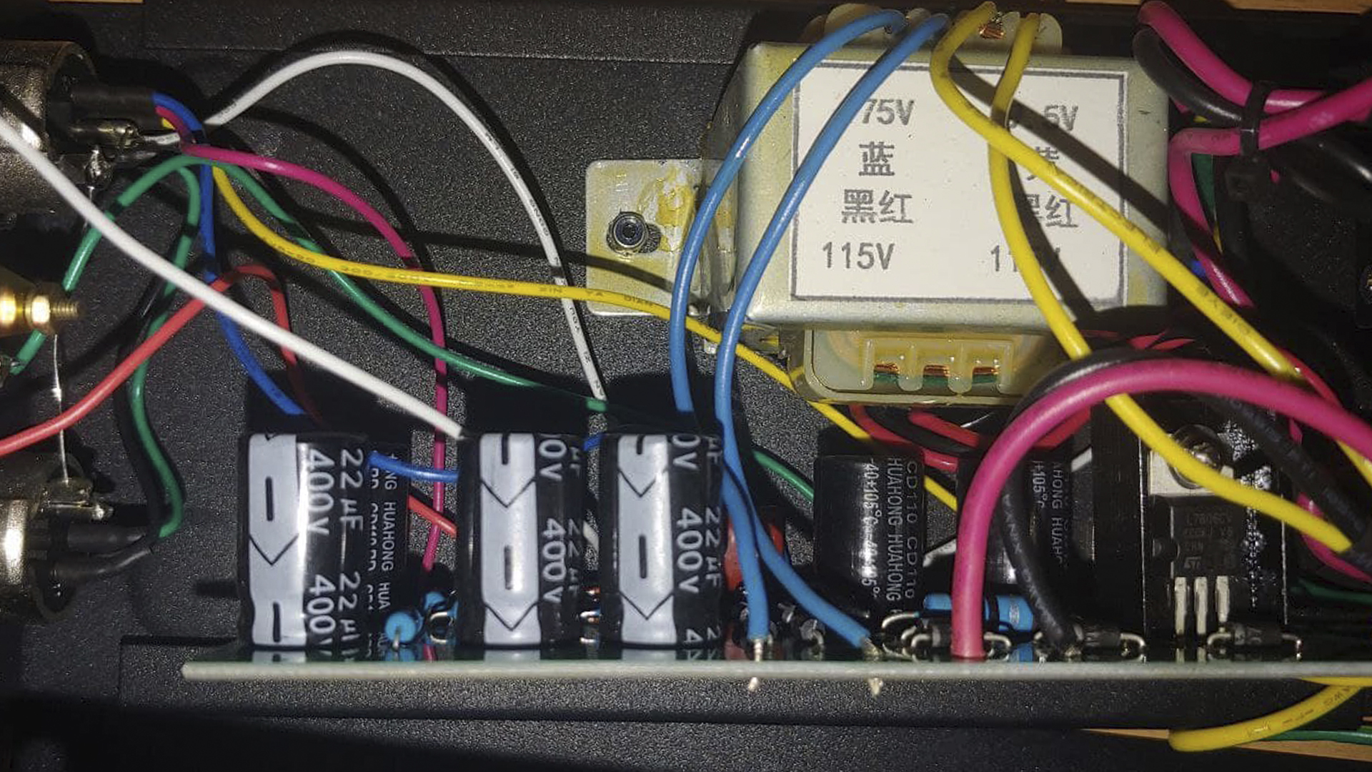в общем, приходим к выводу, что в корпуса микрофонов они ставят хорошие комплектующие, ведь в WA-47 стоят кондеры от рубикон и вима, но вот в блоке питания все кондеры Huahong