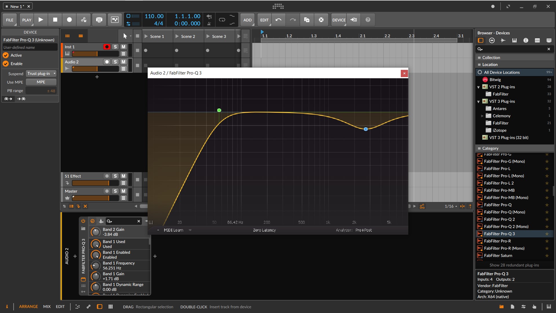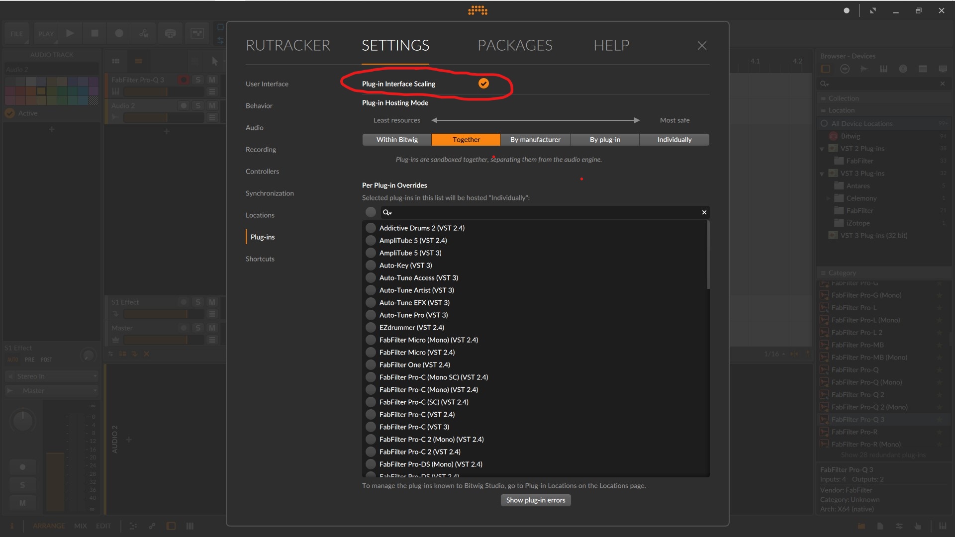 Подскажите, пожалуйста, можно ли как-то исправить косяк. Открываю плагин в первый раз, картинка чёткая, все настройки работают. Закрываю плагин, а когда возвращаюсь назад к нему и открываю во второй раз, то вся картинка смазана, крутилки не работают, но сам плагин работает исправно (так как настроил в первый раз). Такая история с плагинами Fabfilter и Amplitude. Картинки прикладываю. Что можно сделать в этой ситуации? Замечу, что в других DAW такого косяка нет, все открывается и работает на ура. Это происходит только в Bitwig. Есть подозрения, что это из-за процессора ( Ryzen 5 3500U, оперативки 8 Гб) Но пробовал его ускорять- не помогает. Переустанавливал саму программу, плагины и даже windows. Результат один- второе открытие и смазанная картинка, без возможности регулировки. Ещё пробовал во время процесса ставить отдельную песочницу для плагина (иногда срабатывало!) но опять же только для одноразового открытия окна, и нужно было закрывать весь плагин, со всеми настройками (т.е. они сбрасываются).
