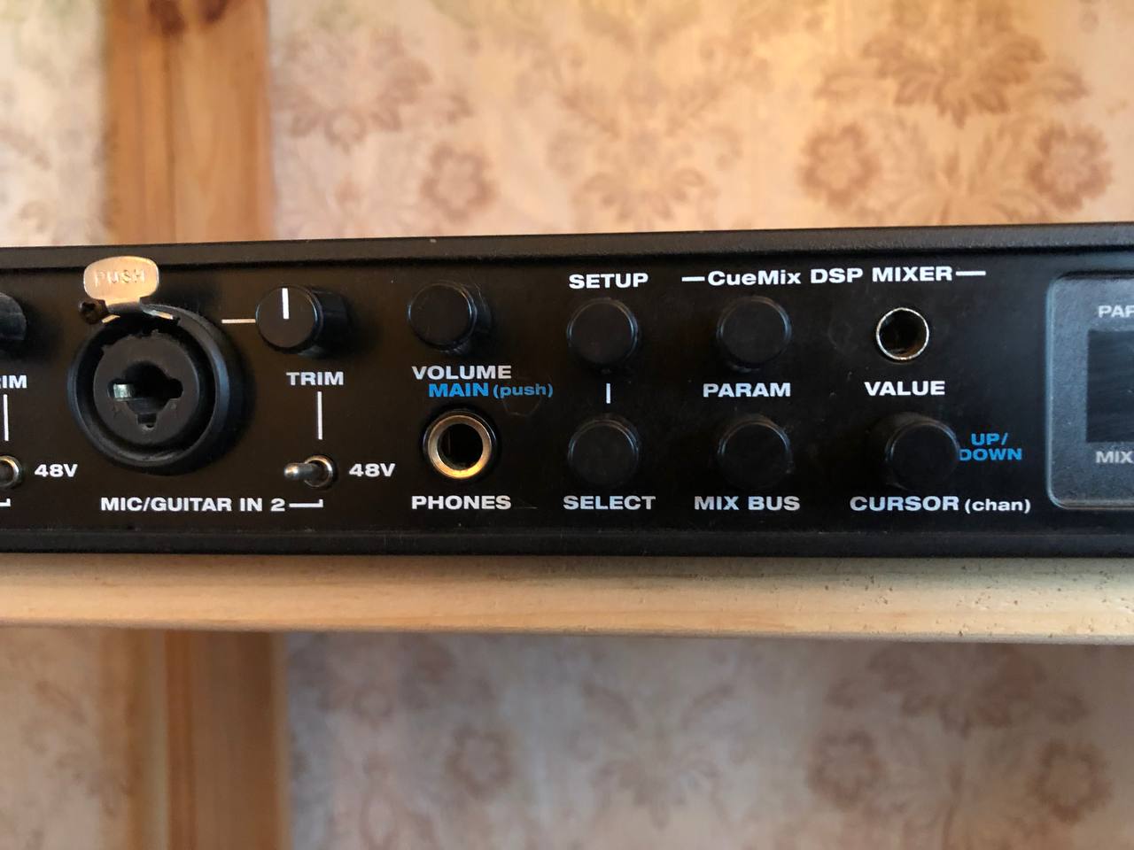 Отличный аудиоинтерфейс с огромным количеством входов и выходов. Может использоваться как в студии, так и на лайве для обработки инструментов "на лету" и проигрывания подкладок - работает без подключения к компу, как микшер.