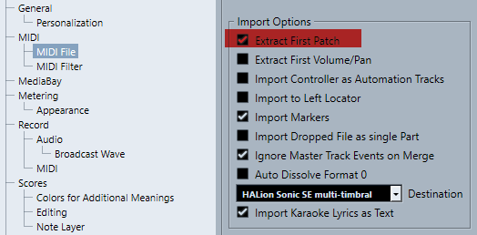 ))На одном из форумов,было упомянуто о галке - Extract First Patch.В настройках по дефолту был установлен режим Time Linear,судя по всему и получал окошко с несовпадением "Time Type mismatch!"Сменил на музыкальный.Но самое интересное,что если бы программа не глюканула я бы не перезагрузился с такими настройками!А по всей вероятности- это обязательное условие.В первой галке не уверен.но скорей всего это из-за не совпадения режимов.Сейчас все как надо,всем шампанского!12.0.20. Теперь уже 30. Из какой программы MIDI тянете?Прошерстил это меню вдоль и поперек.И с такими настройками тоже,создается новая дорожка.У вас какая версия?