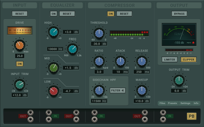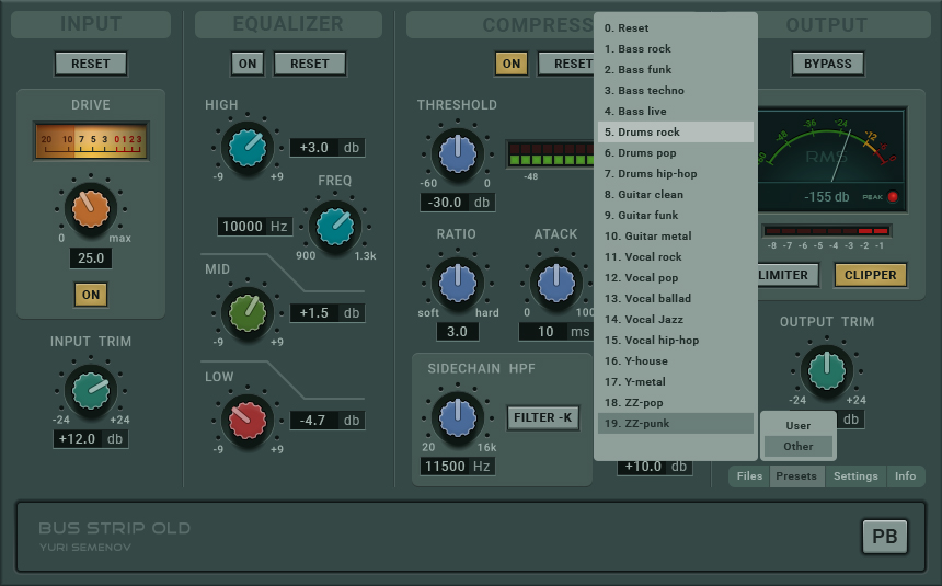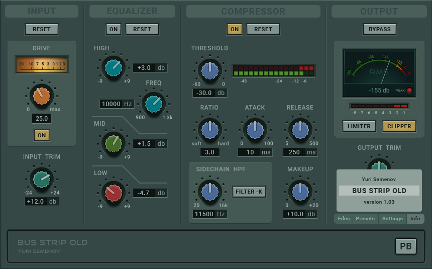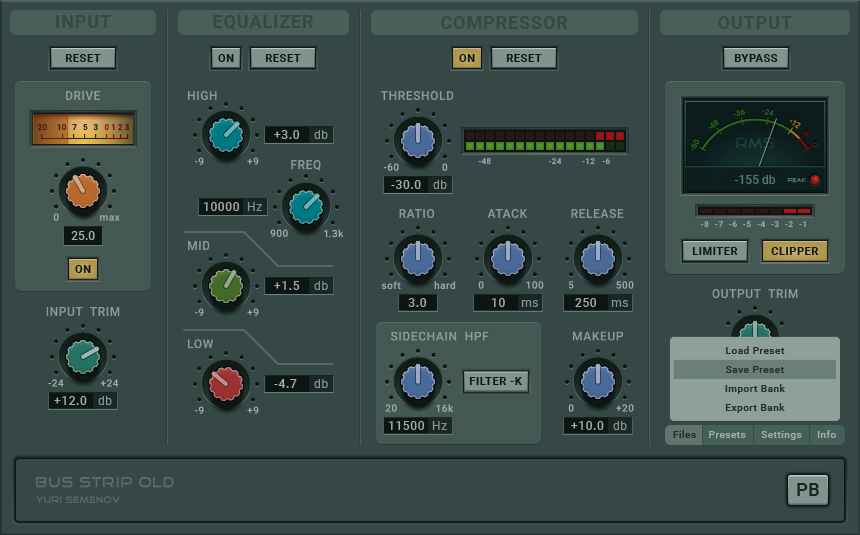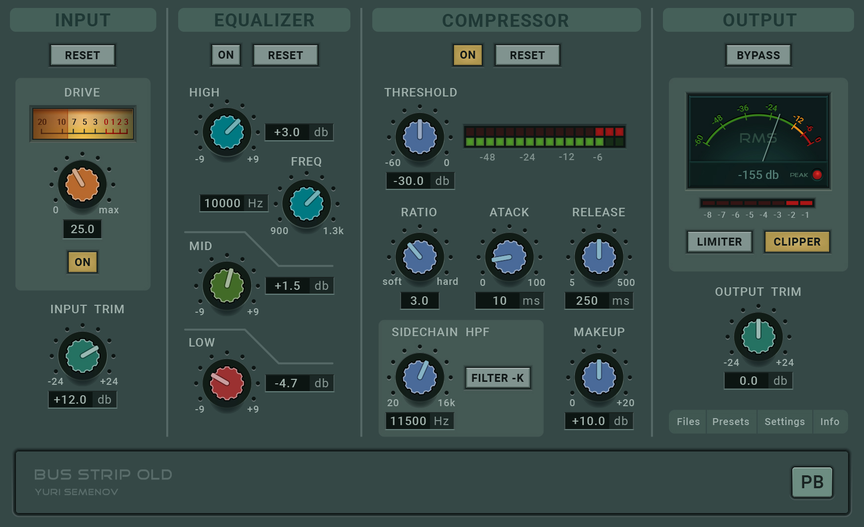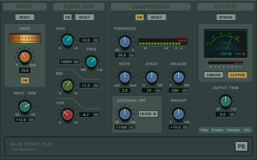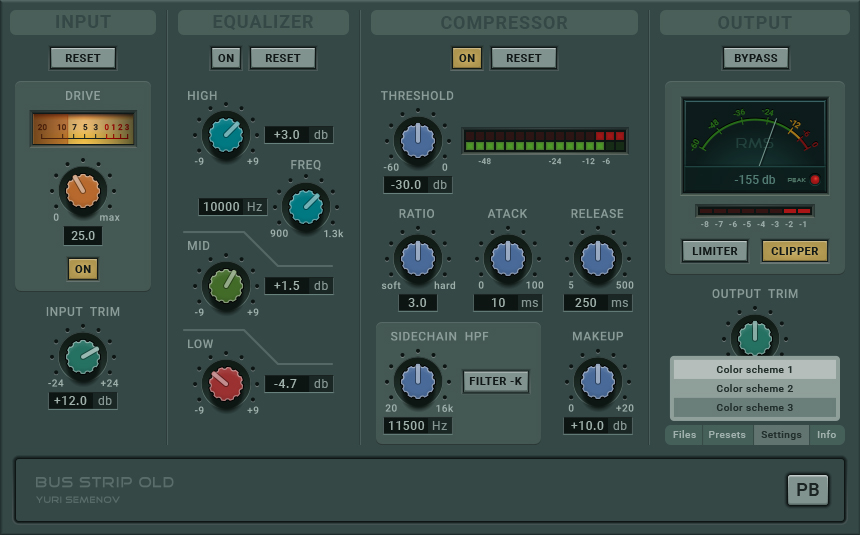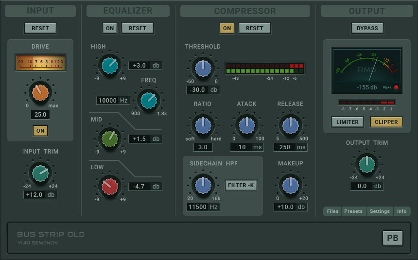 Небольшое обновление Channel Strip OLD_ 2 v-2.51 Добавлена кнопка Warm в Ton Eq. Параллельная задержка в 4 семпла, создающая гребенчатый фильтр и тем самым ослабляя частоты в районе 6кгц устраняя излишнюю резкость в этом диапазоне делая звук более тёплым. #157