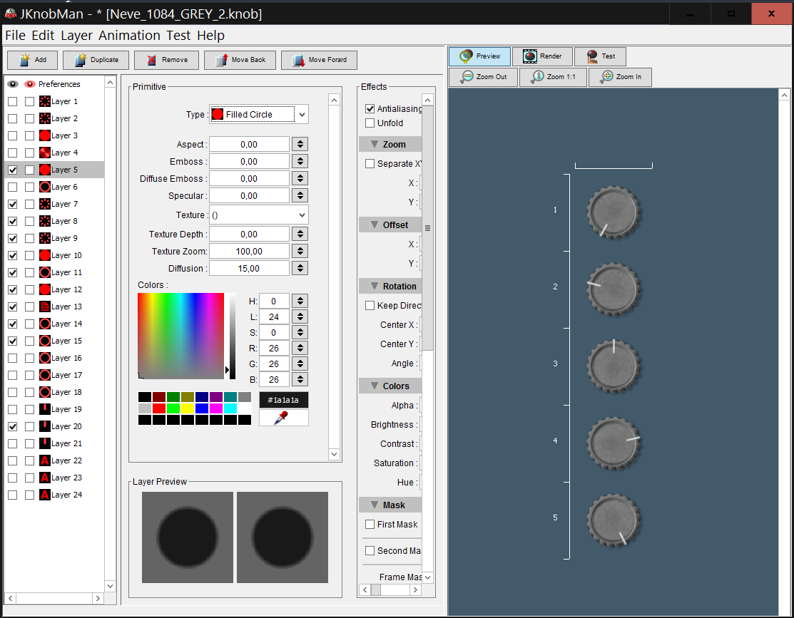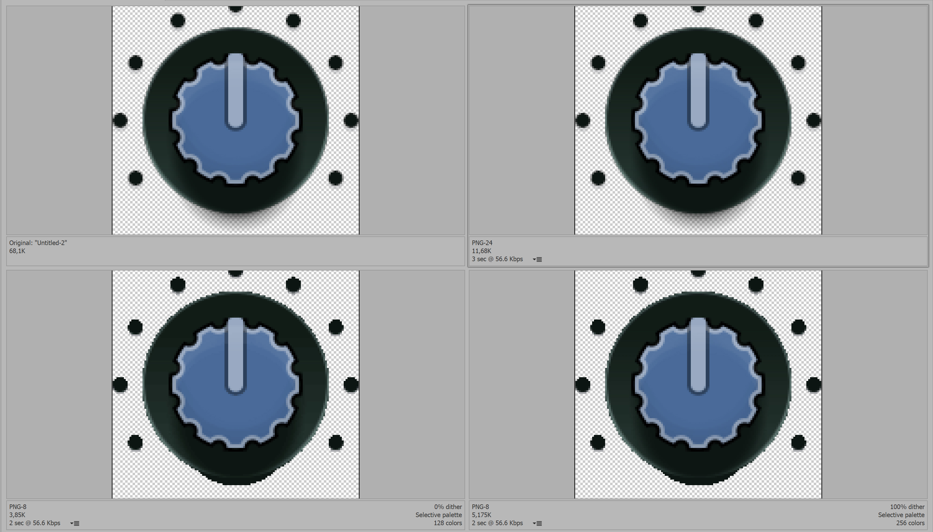 Рендер крутилок я делаю 51, если больше к примеру 101, то визуально будет плавнее выглядеть, но на компах со слабой видеокартой они могут не отображаться. Поэтому делал дубликаты с рендером 31,51,101, и помещал в папку плагина, что бы у пользователя был выбор заменить на желаемый размер.
