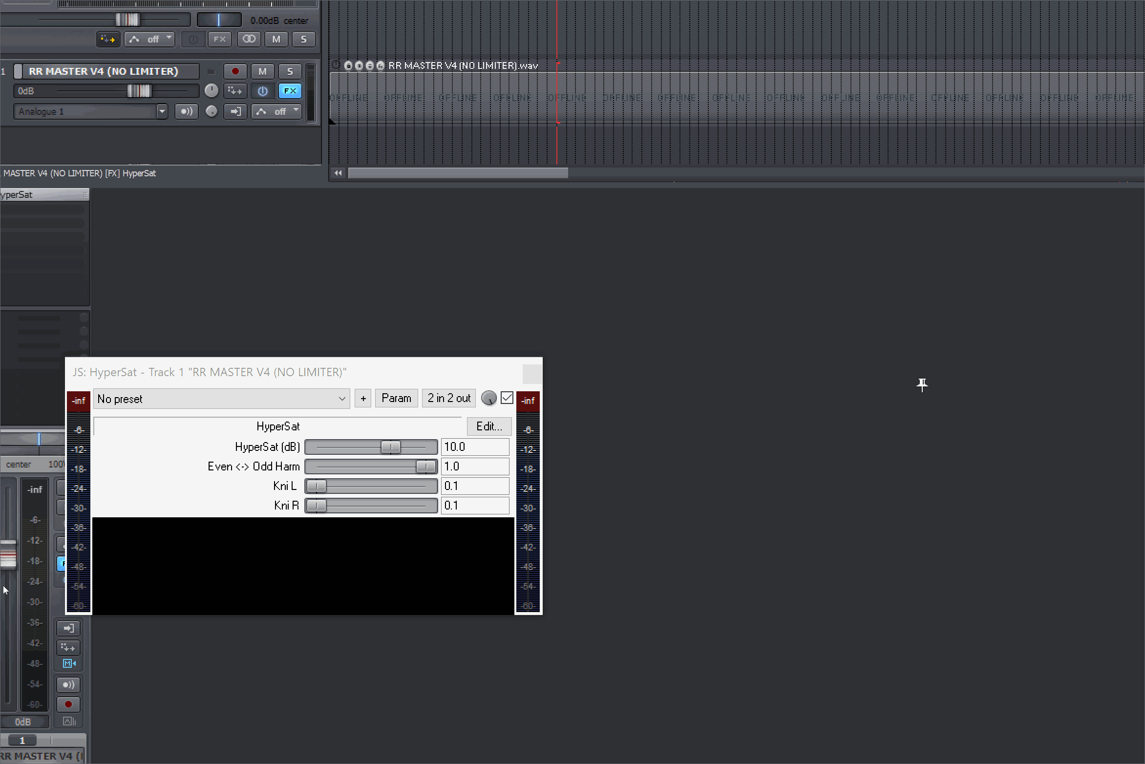 В общем основные хотелки по сатуратору я реализовал. Код оптимизирован по самое не хочу, потребление в разы меньше чем у того же брайнворкса и кушей. Про стабильность JSFX против VST можно не начинать. Ещё ни разу Reaper не упал от JSFX, а вот Kush и PA валили его за милую душу.