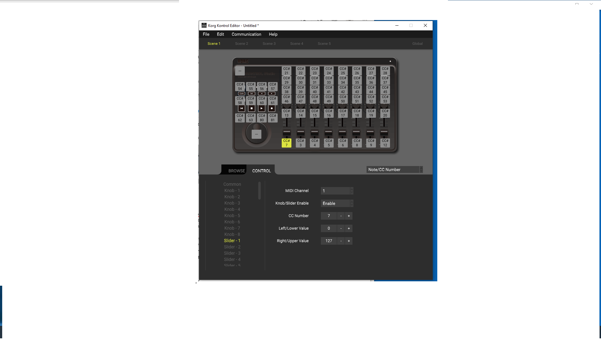 Привет всем, нужна помощь: контроллер Korg Midi Control Studio работает только в модусе DAW Mixer-Control, а когда я перехожу в assignable-modus, чтобы конфигурировать контроллер , задавая в Korg Control эдиторе новые #CC номера, то ничего не происходит. Студийные настройки в Кубейсе все соответствуют. Прилагаю несколько скринов этих настроек. У меня немецкая версия Куба, но думаю будет понятно. Заранее благодарю.