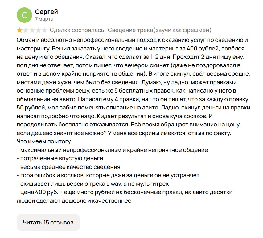 Сведение+мастеринг за 400руб., да ещё "на авито десятки людей сделают дешевле"