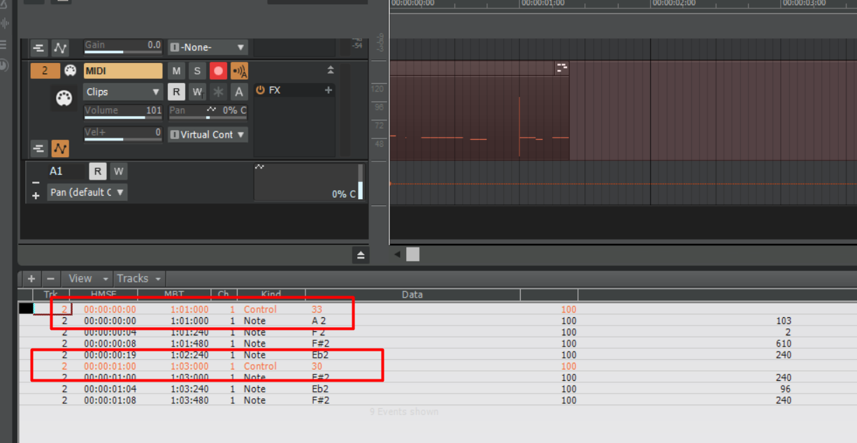 Колесо модуляции - свой. В ивент листе все видно - и какие ноты сыграны, и какие контроллеры задействованы и т.п.