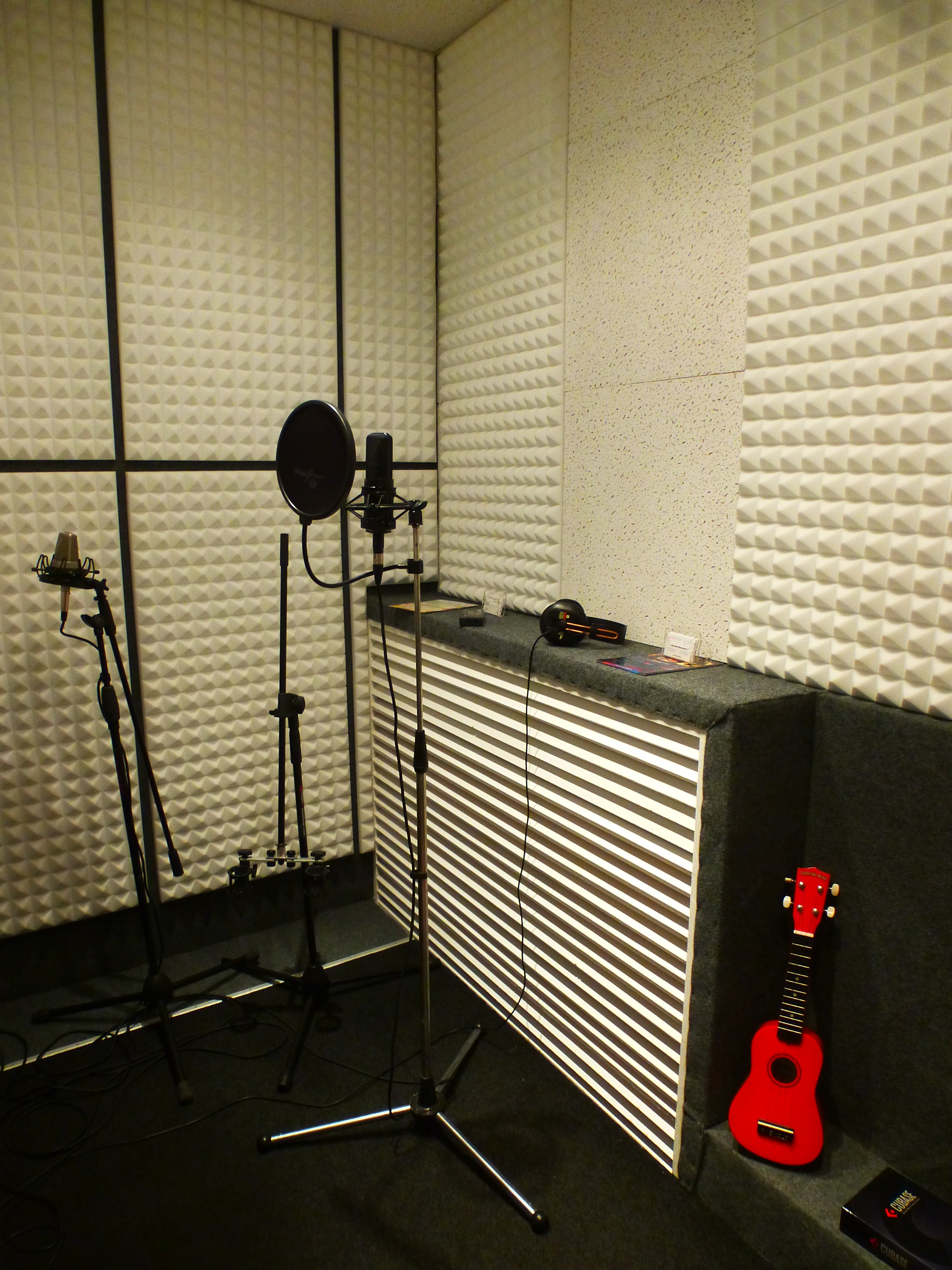 Помещение разделено на три зоны: контрольная комната, вокальная комната, комната бытового назначения. Общая площадь 30 кв.м. Сразу оговорюсь - для хорошей записи барабанной установки места мало. Размер контрольной - 18 кв.м., размер вокальной - 5 кв.м.