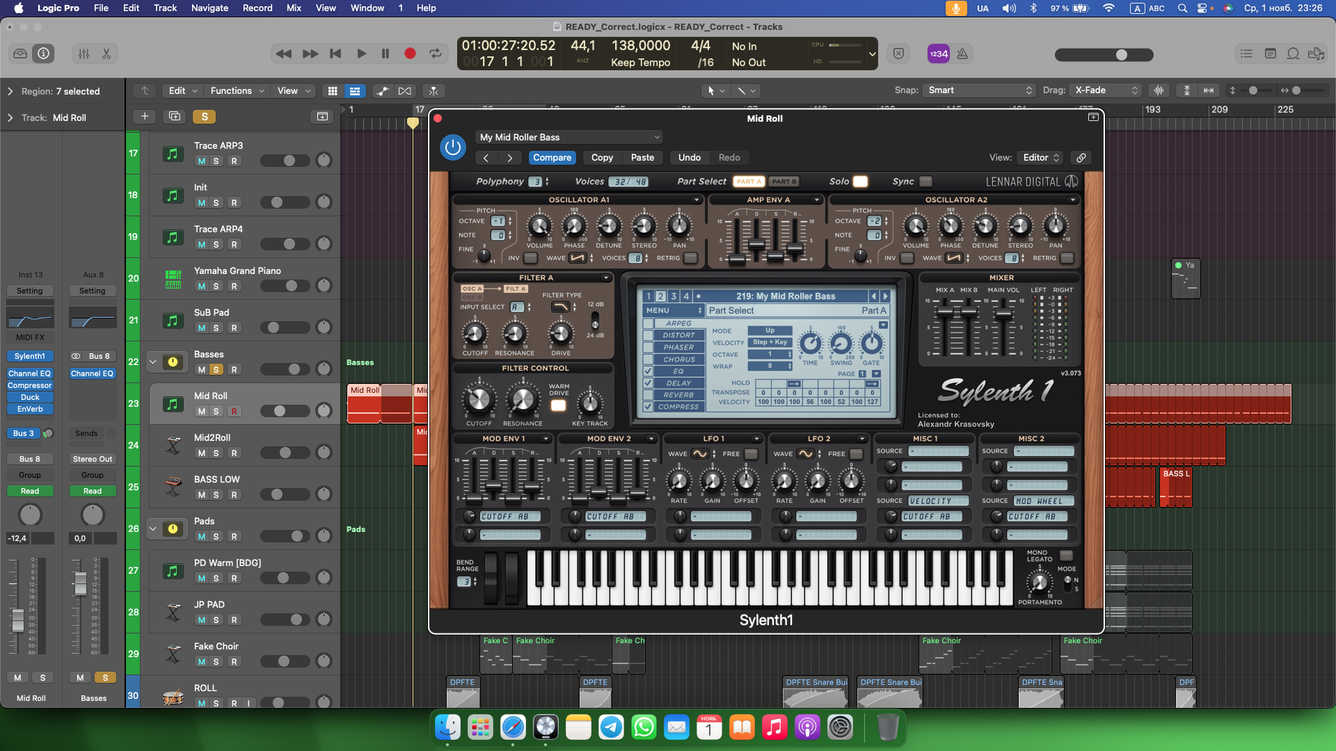 То есть постоянно нота прыгает на октаву вверх вниз. И можно добавить ноты на -12 (на октаву вниз) относительно основной и закрыть «дыры» , плюс повесить «сайдчейн» на этот мид бас но чтоб он только работал герц от 300 вниз, то есть середину и верх не затрагивал, а чтоб добавить щелчок к этому мид басу можно повесить «быструю» огибаюшую на питч