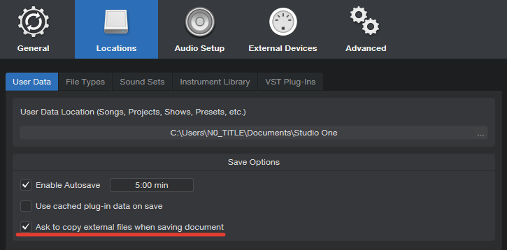 Они туда добавляются только при сохранении проекта, и если стоит галочка вот тут:А есть где-то в настройках такая фича, чтобы файлы закинутые в окно аранжировки, автоматически добавлялись в папку проекта?