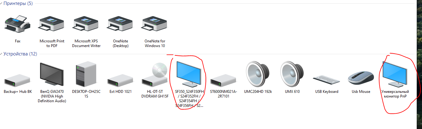 Вот тут у вас что и сколько мониторов? Попробуйте обновить или переустановить конфигурацию в этом разделе.
