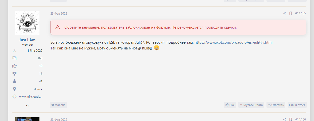 Просто_Я Member 3 Ноя 2022 58 10 8 44 12 Ноя 2022 #5 robotgard написал(а): Обратите внимание, пользователь заблокирован на форуме. Не рекомендуется проводить сделки. https://rmmedia.ru/threads/68168/post-2720853 Посмотреть вложение 221959 Нажмите для раскрытия... Ничо нинаю )) Звуковуха есть, состояние идеальное, уже много лет как лежит отстёгнутая в коробке со всеми причиндалами