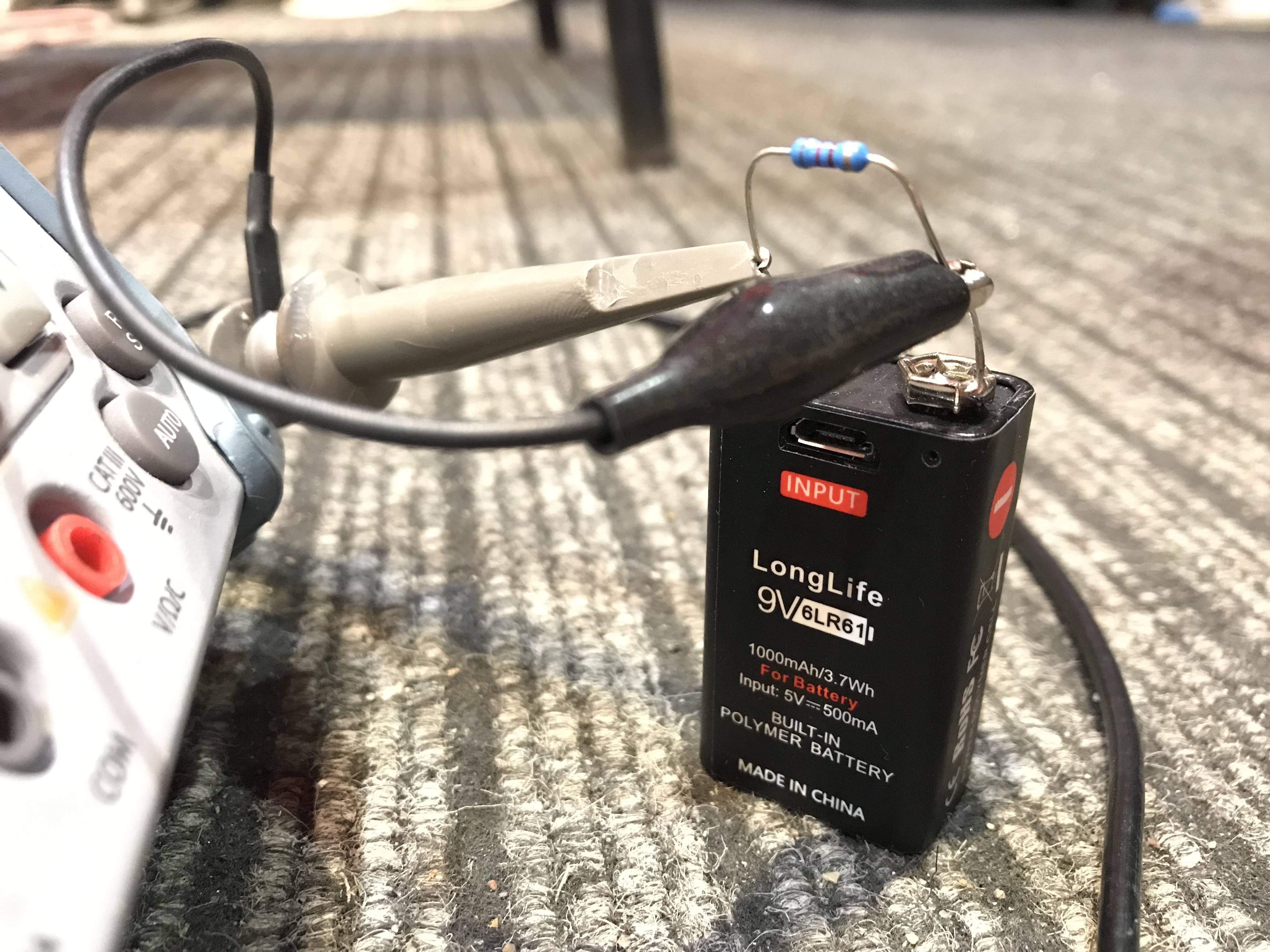 Для тестирования я навесил резистор на 820 Ом, чтобы потреблялся хоть какой-то небольшой ток (в районе 10-12 мА).